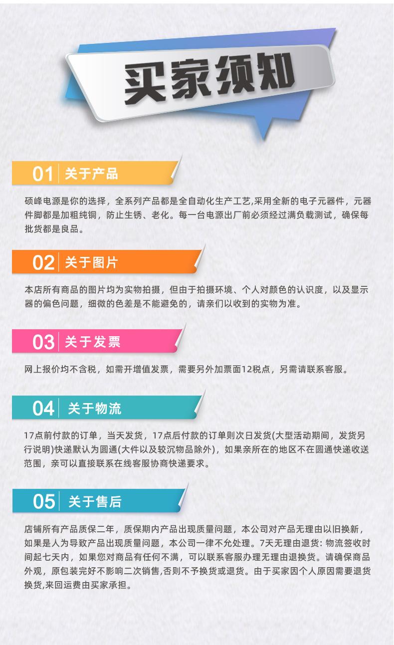| Fuente de alimentación conmutada con ventilador 5V60A (S-300-5) | 110 V/220 V | 5 V | 60A | 300 W | 0,78 kg | 214*113*50MM | 36 | https://detail.1688.com/offer/588287919251.html?spm=a2615.7691456.autotrace-offerGeneral.10.4be66296iX3oGt |