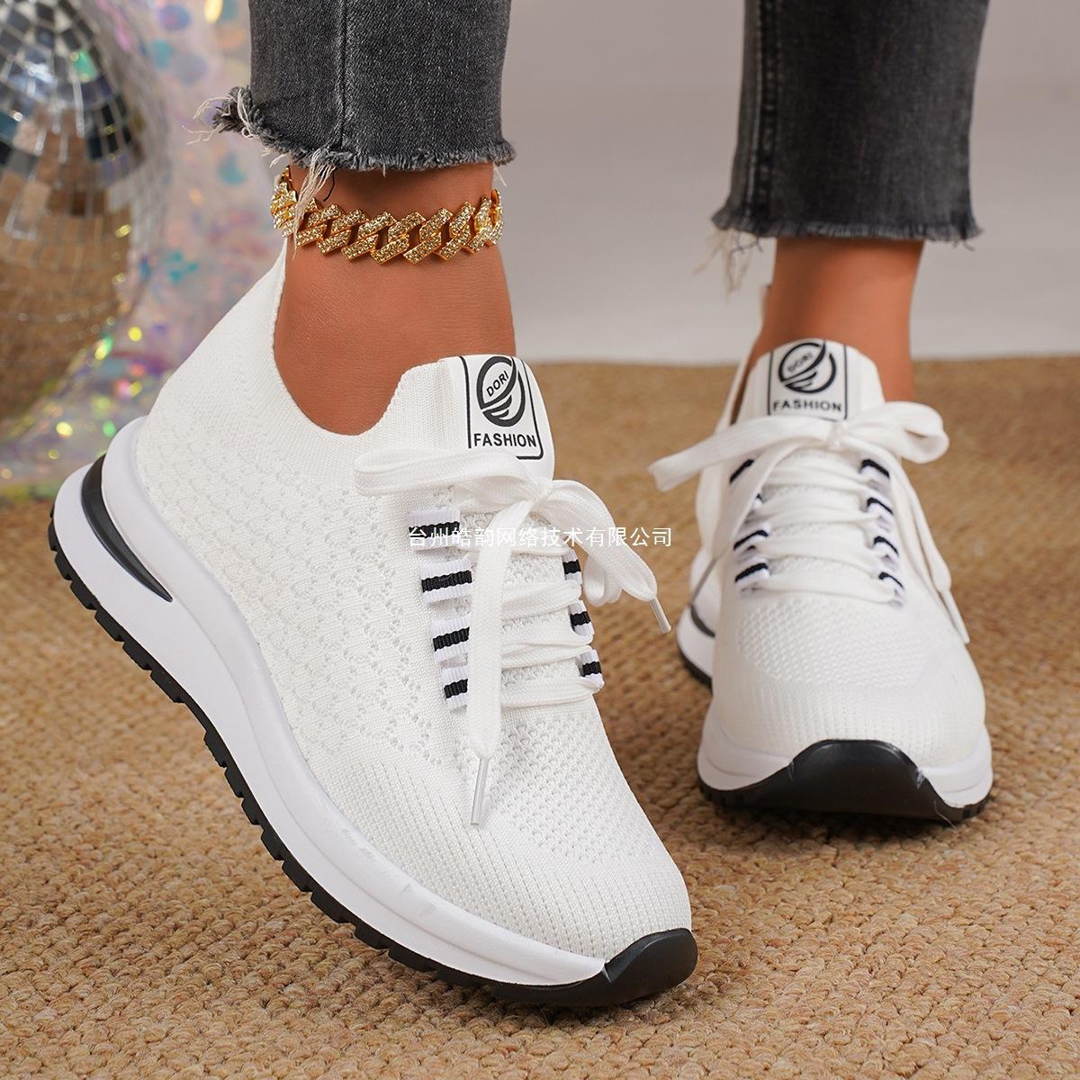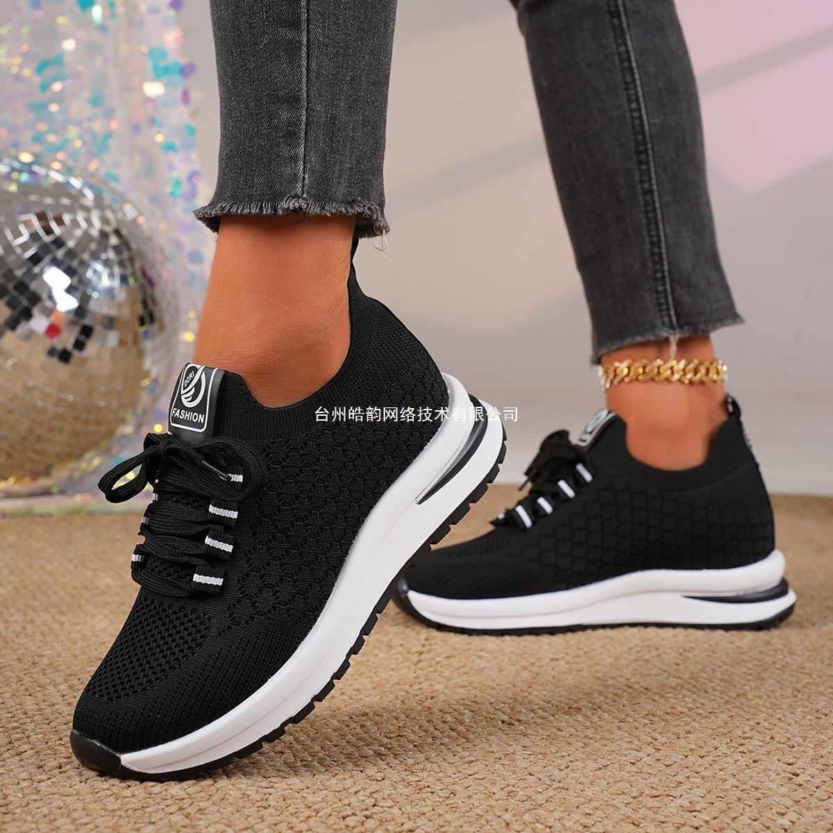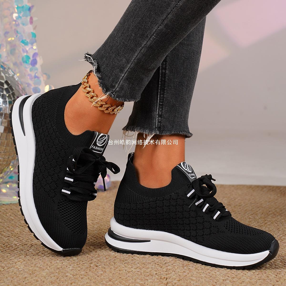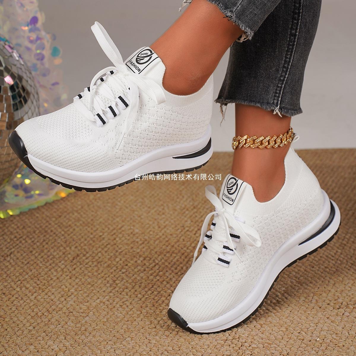 Zapatos de Mujer de Comercio Exterior Nuevos Zapatos Deportivos de Mujer Transfronterizos Talla Grande Suela Gruesa Punta Redonda Malla Transpirable con Cordones Zapatos Deportivos