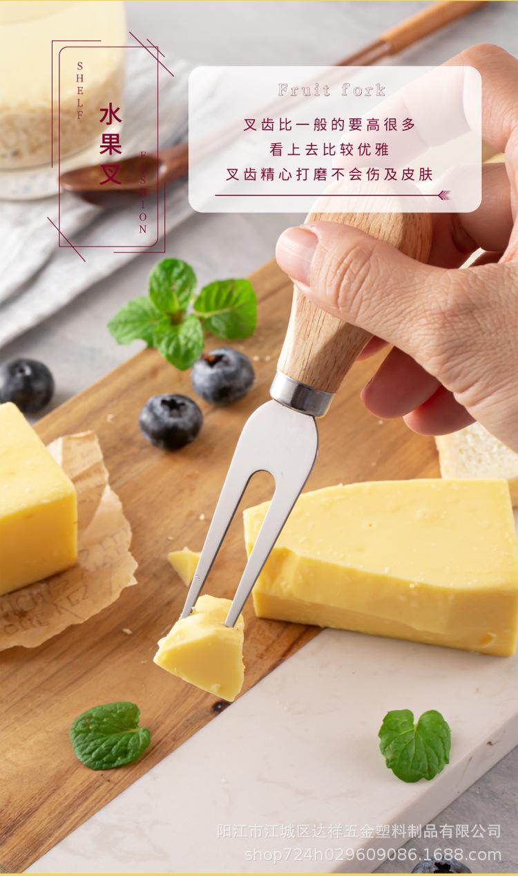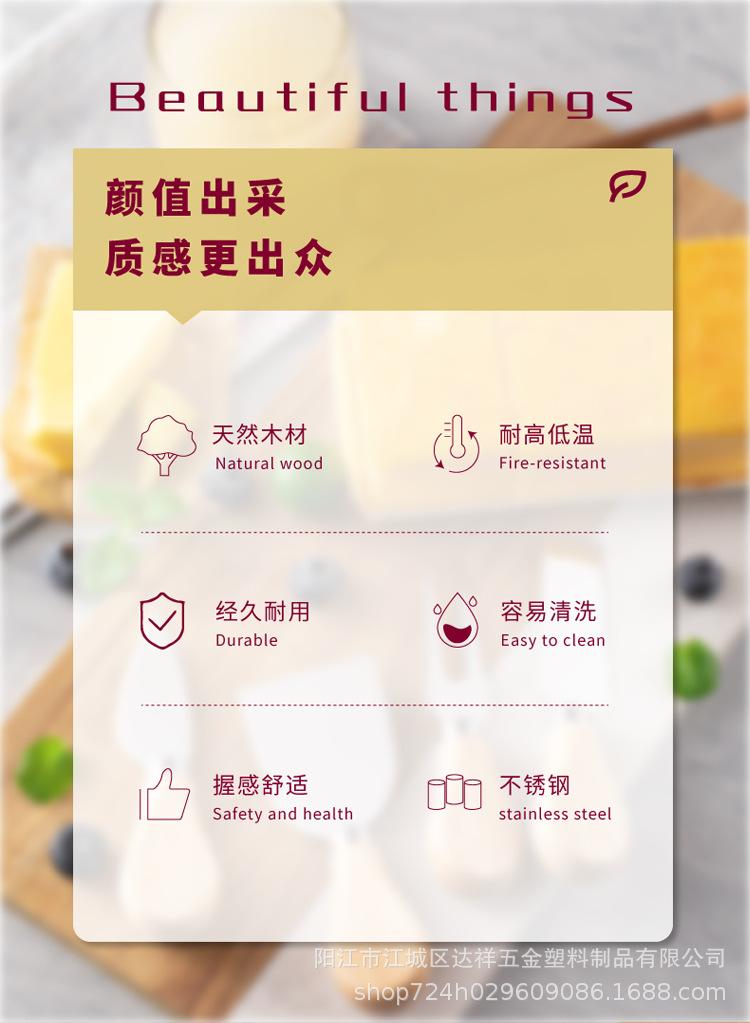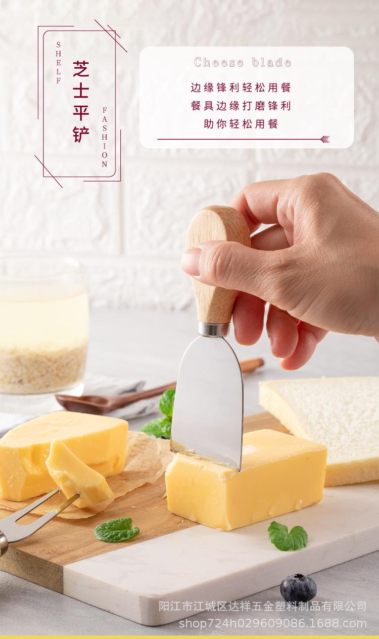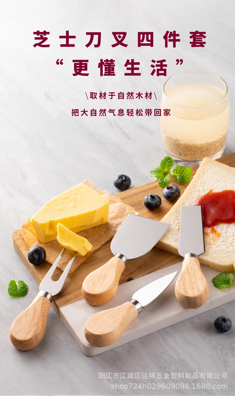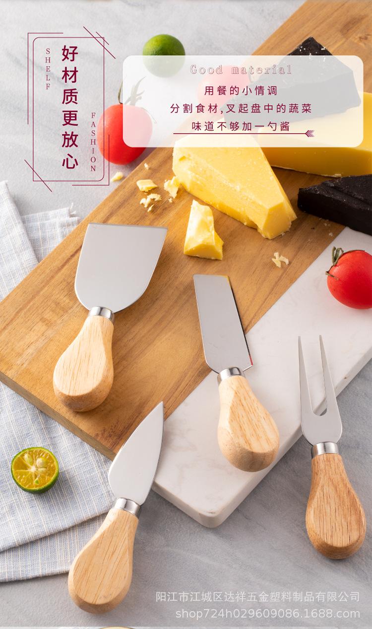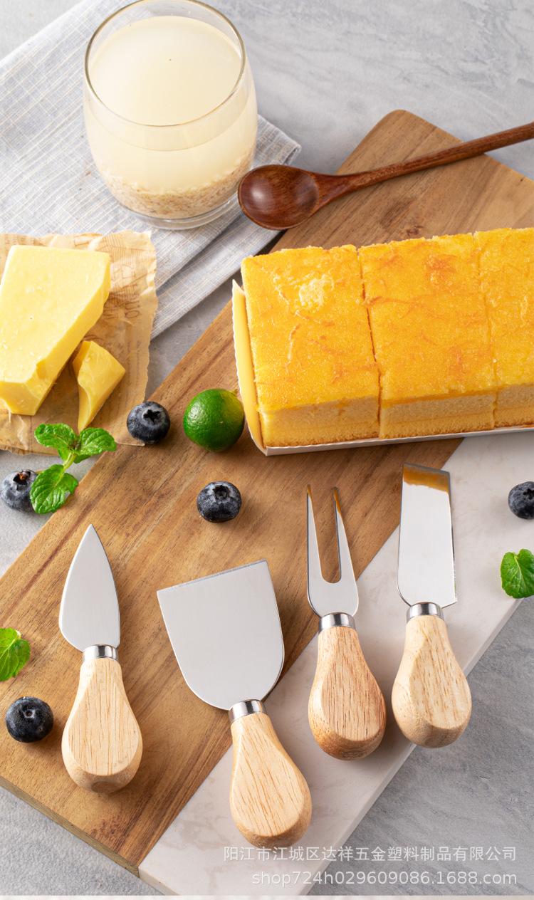 Cuchillo para queso acero inoxidable mango de roble cuchillo para queso tenedor espátula para mantequilla herramientas para hornear juego de 4 piezas fabricante en stock