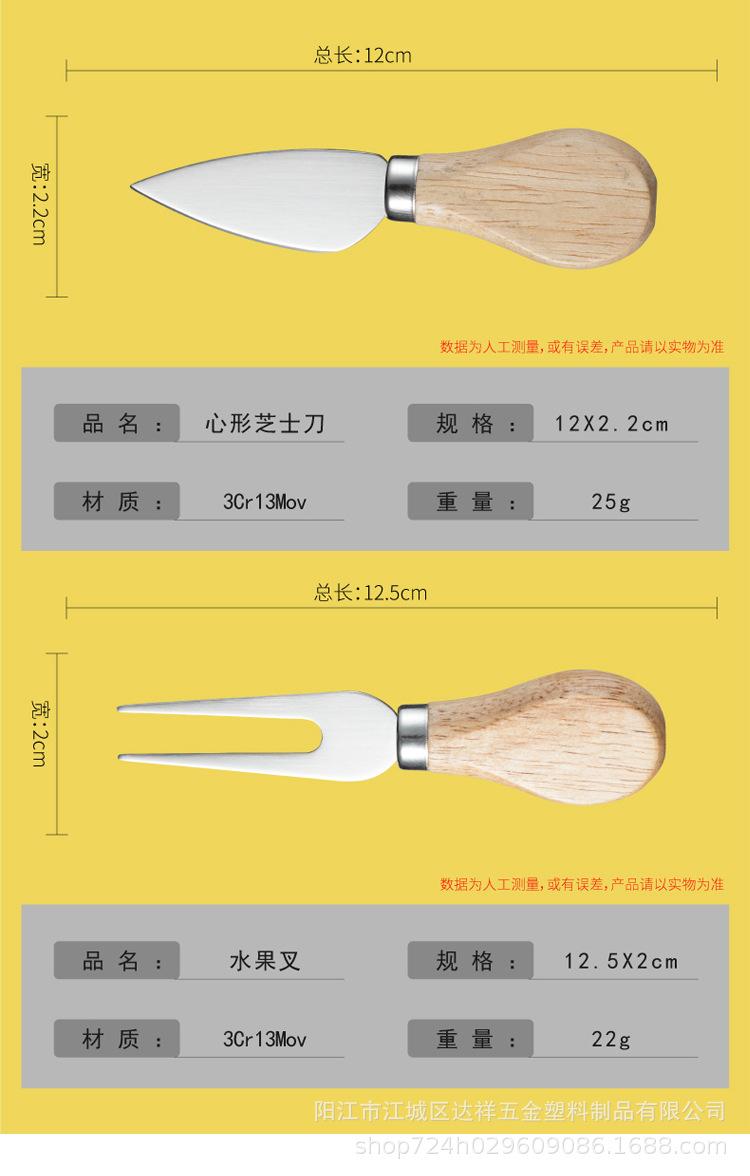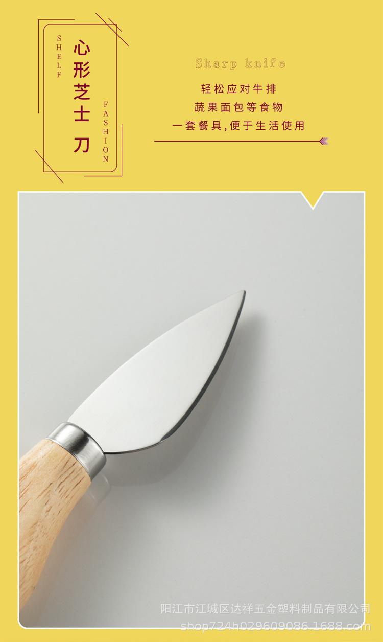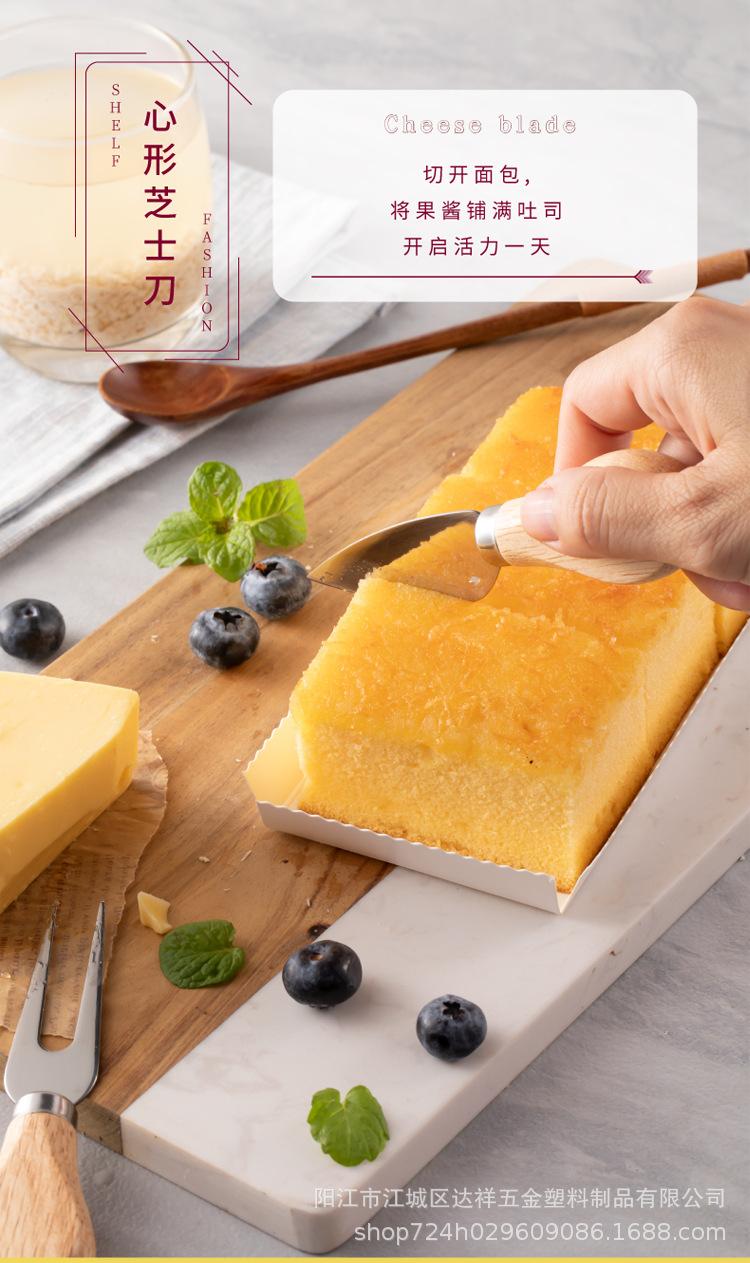 Oak handle 4-piece card package, 4-piece plastic handle card packaging, Heart-shaped cheese knife bulk (packag...