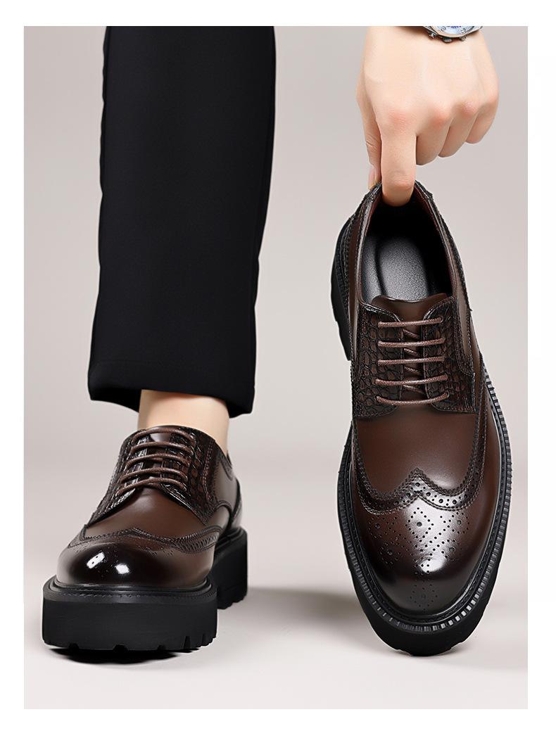 Zapatos de Piel Genuina para Negocios Brogue Británico de Piel de Vaca Antideslizantes Clásicos Grabados para Hombre Corte Bajo con Cordones Traje de Trabajo Zapatos de Cuero