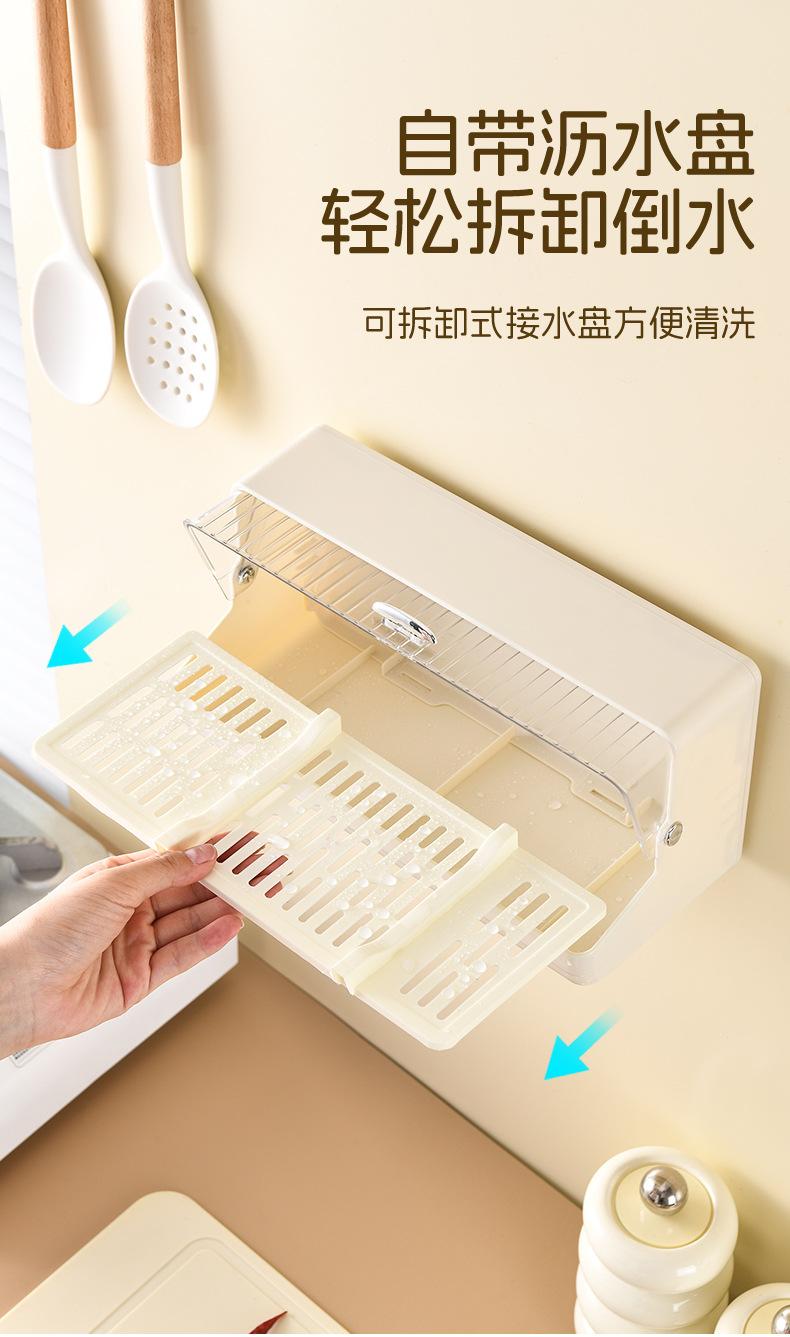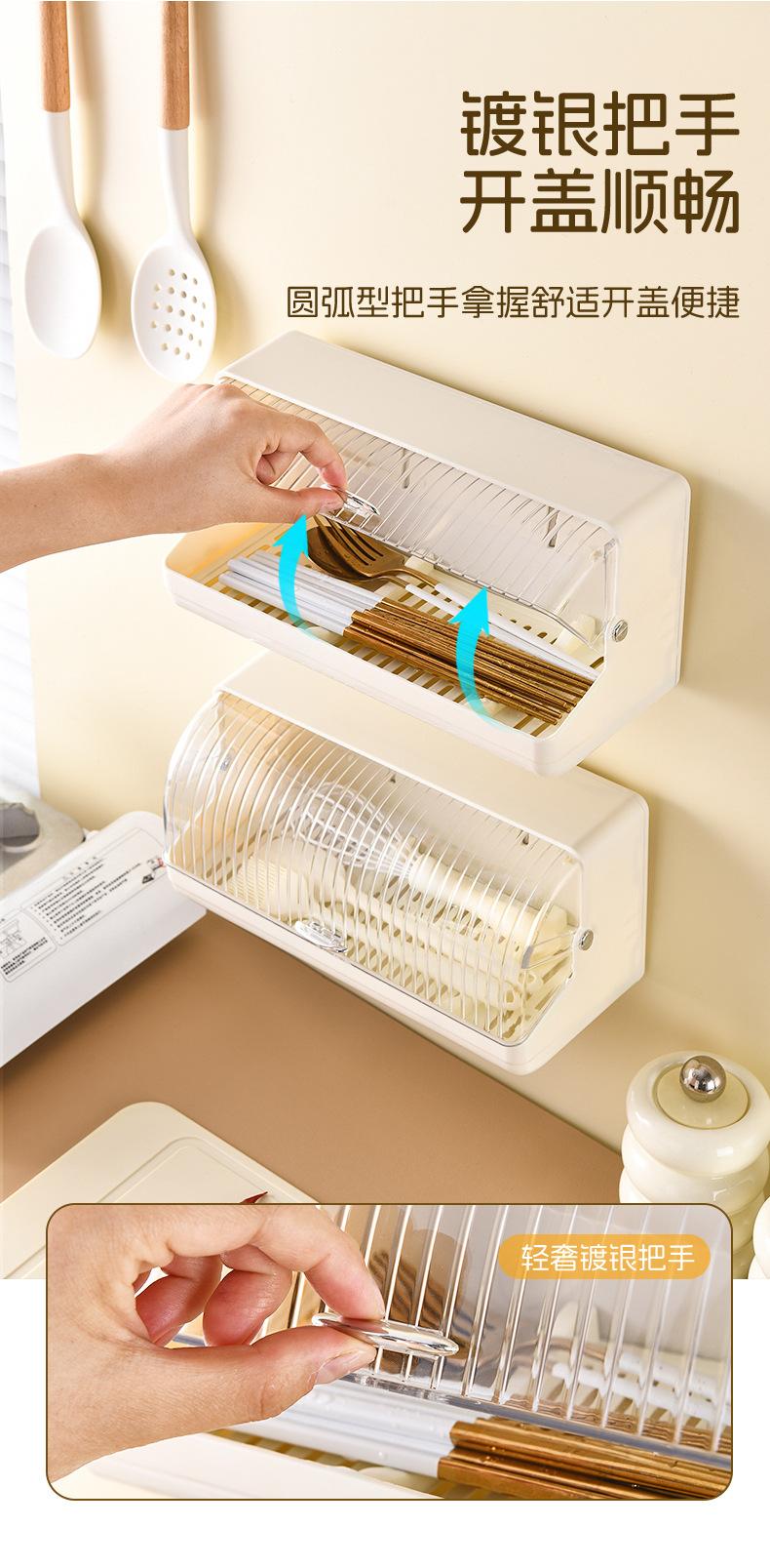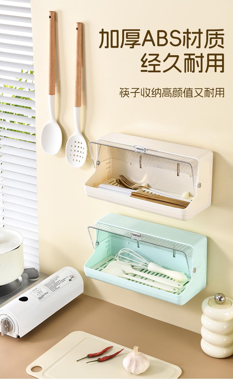 Caja de Almacenamiento para Palillos con Tapa, Tubo para Palillos Organizador de Cucharas y Palillos de Cocina, Escurridor con Ventosa Sin Perforaciones