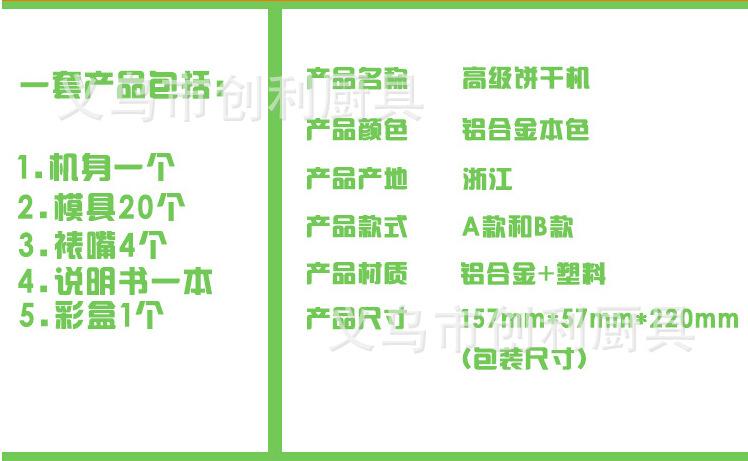 Hoy en día, con la mejora de la calidad de vida, muchas personas aprenden a hornear en casa. El libro "Aprende a hornear con Junzhi" también es muy popular. Las galletas y pasteles que preparas tú mismo, además de no añadir aditivos, son muy divertidos. Deja que tus familiares y amigos prueben tu artesanía; será muy satisfactorio, ¿verdad? ¡Entonces echa un vistazo a esta máquina de galletas! ¡Es muy fácil de usar! Creo que eres inteligente y no te resultará difícil.