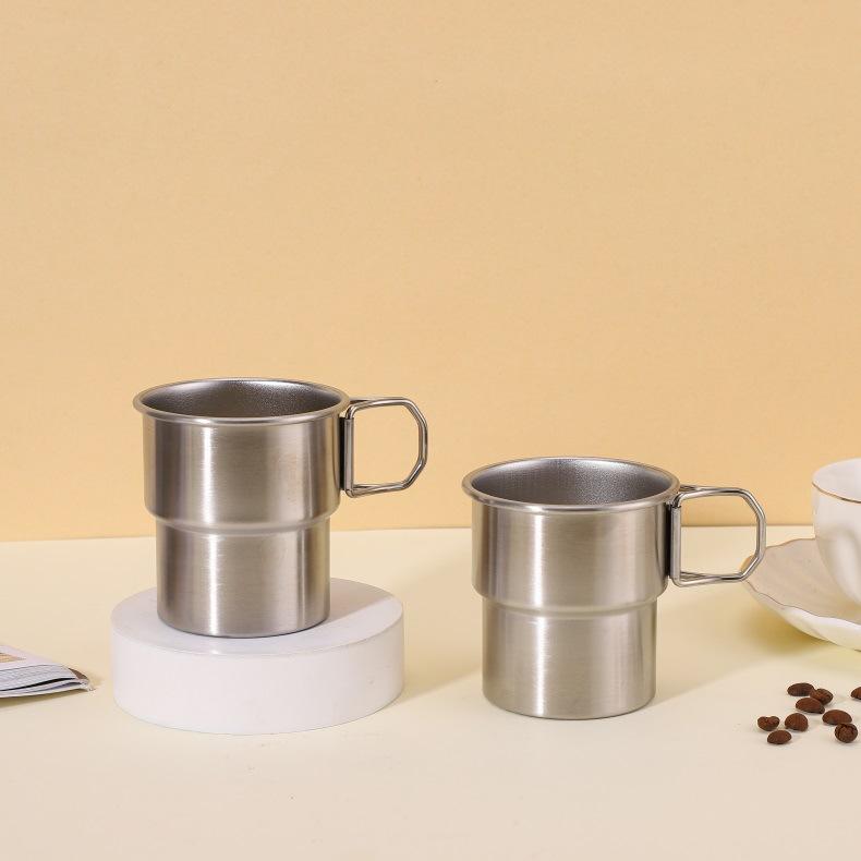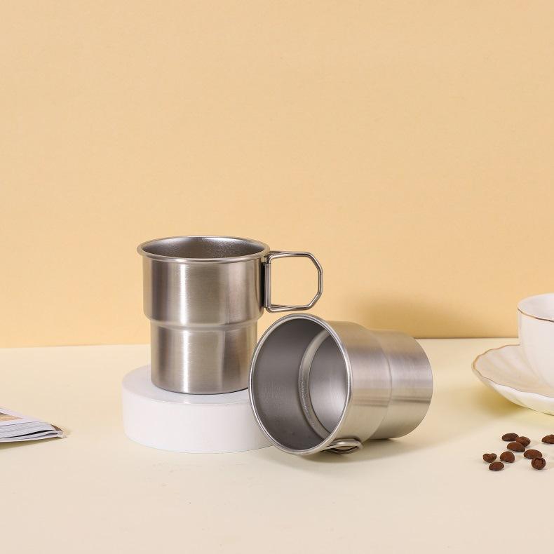 Taza de Cerveza de Acero Inoxidable 304 para Camping al Aire Libre Vaso Escalón Portátil Mango Plegable Vaso de Agua Anti-Escaldaduras