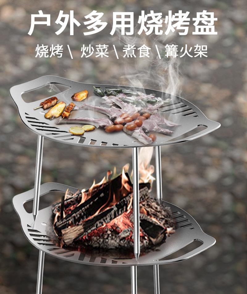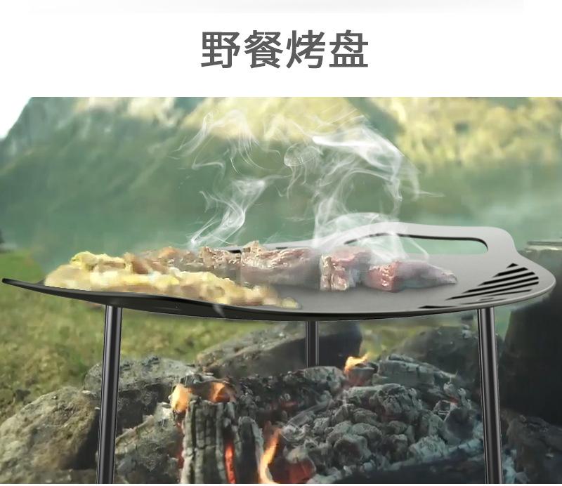 Sartén redonda para parrilla de barbacoa de 3 patas para exteriores, BBQ para saltear, picnic, olla portátil plegable engrosada, rejilla para barbacoa