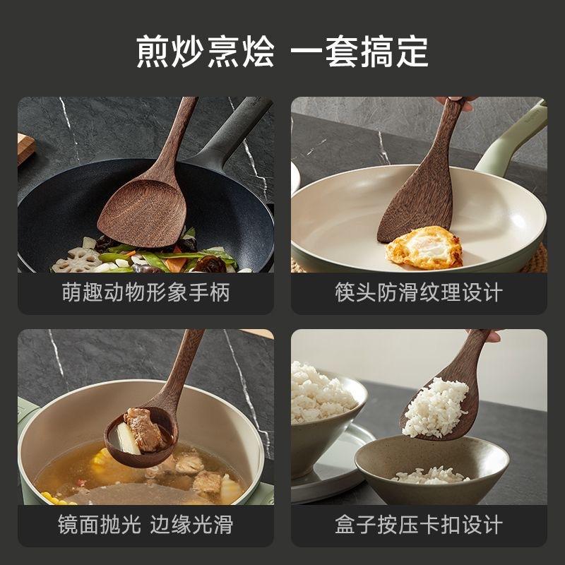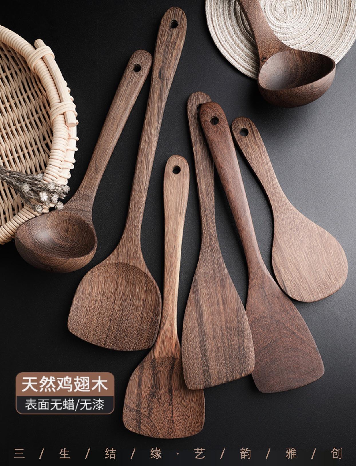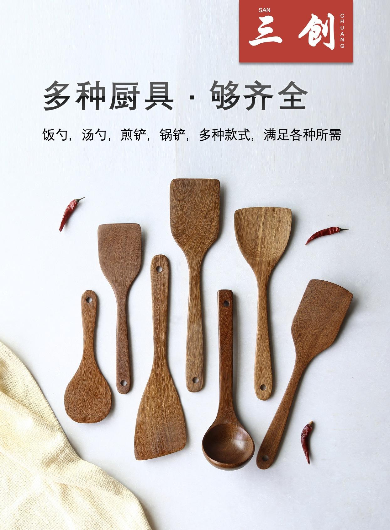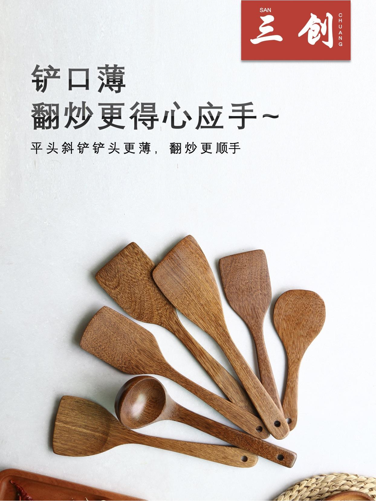 Espátula de madera sartén antiadherente espátula de madera utensilios de cocina para el hogar resistente a altas temperaturas mango largo espátula para saltear juego de cuchara espátula de madera