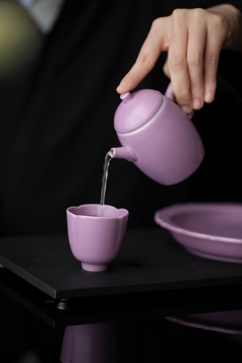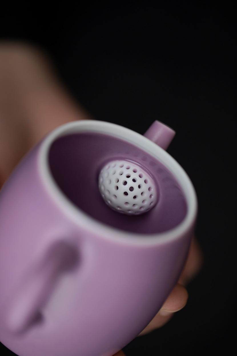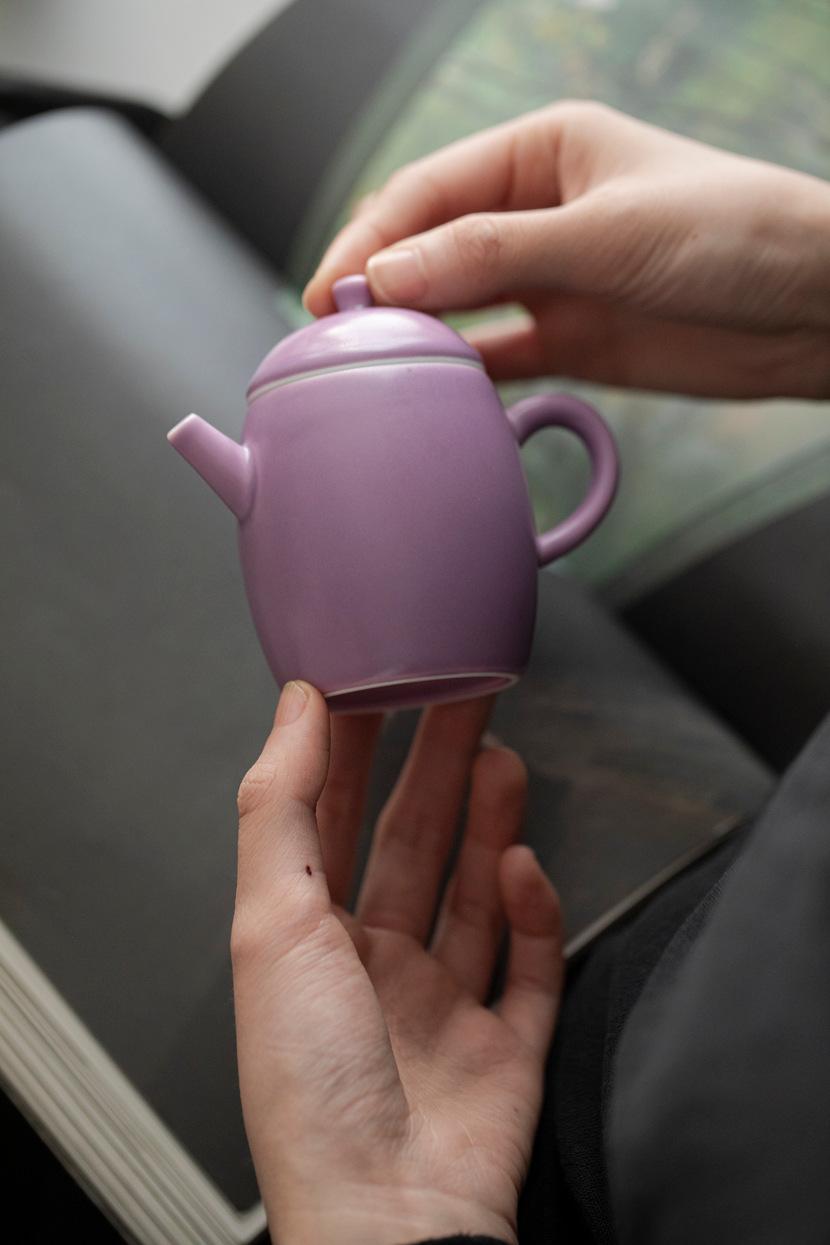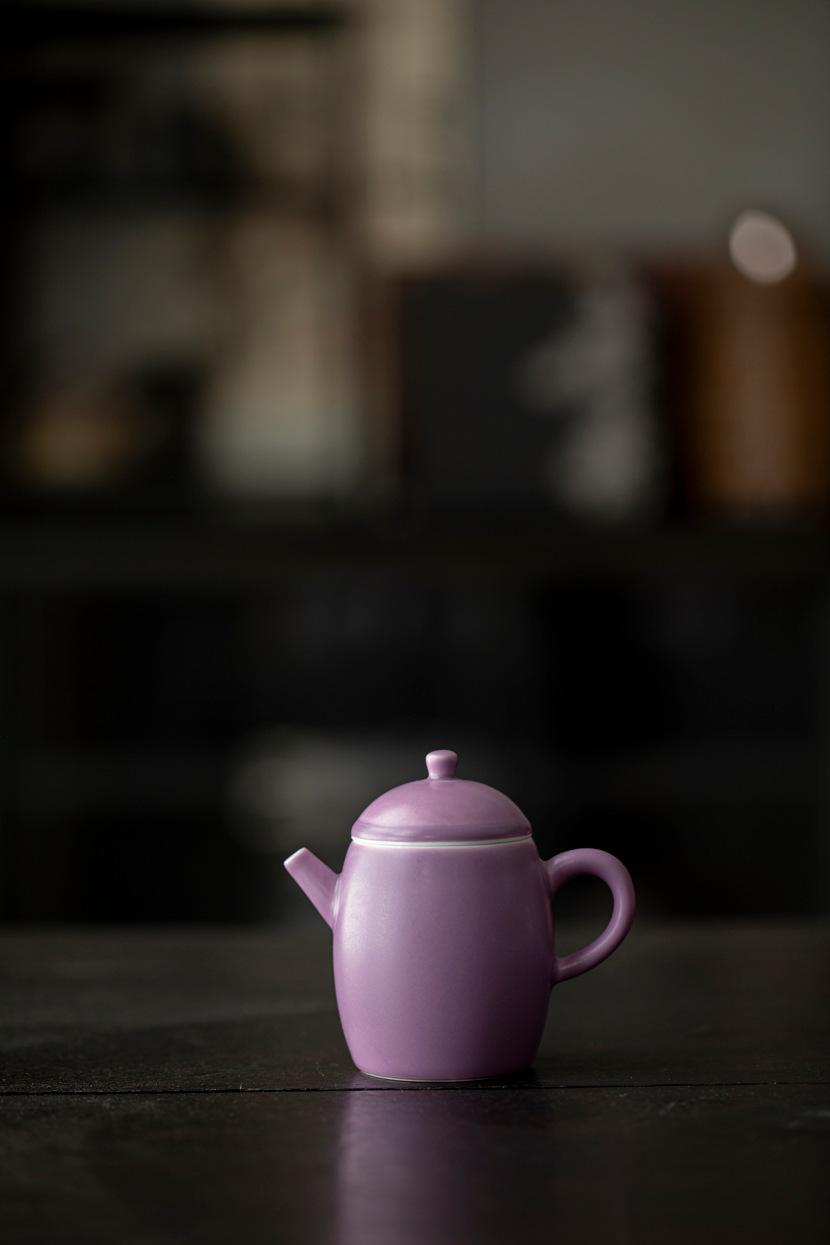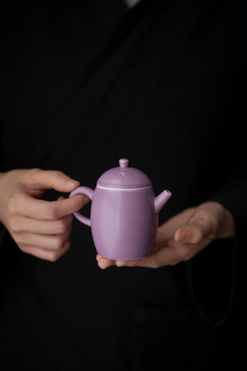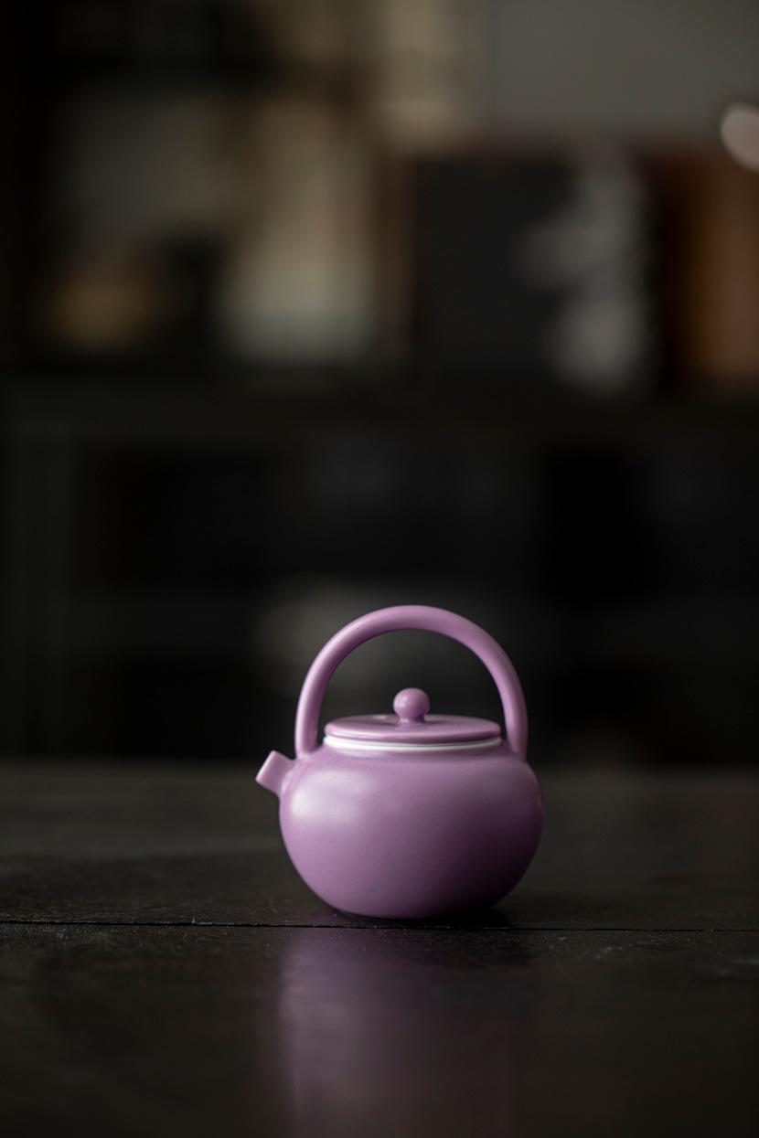 Tetera de Porcelana Esmaltada Morada Mate con Tetera de Amarre Juego de Té Kung Fu Doméstico Tetera de Estilo Chino con Filtro de Agujeros de Bola Tetera Individual