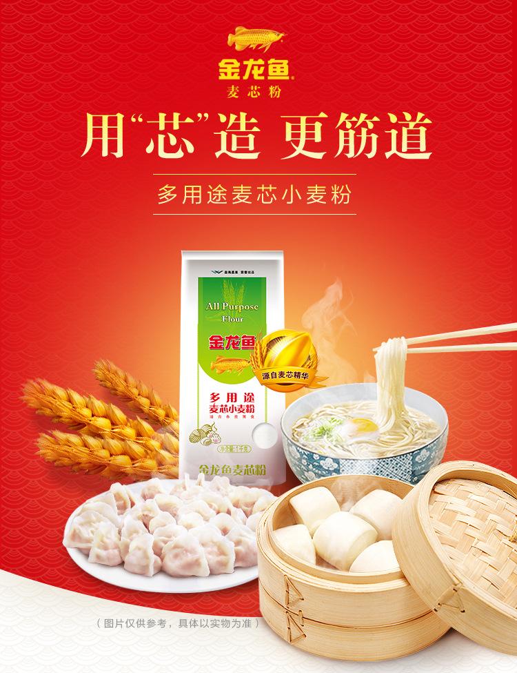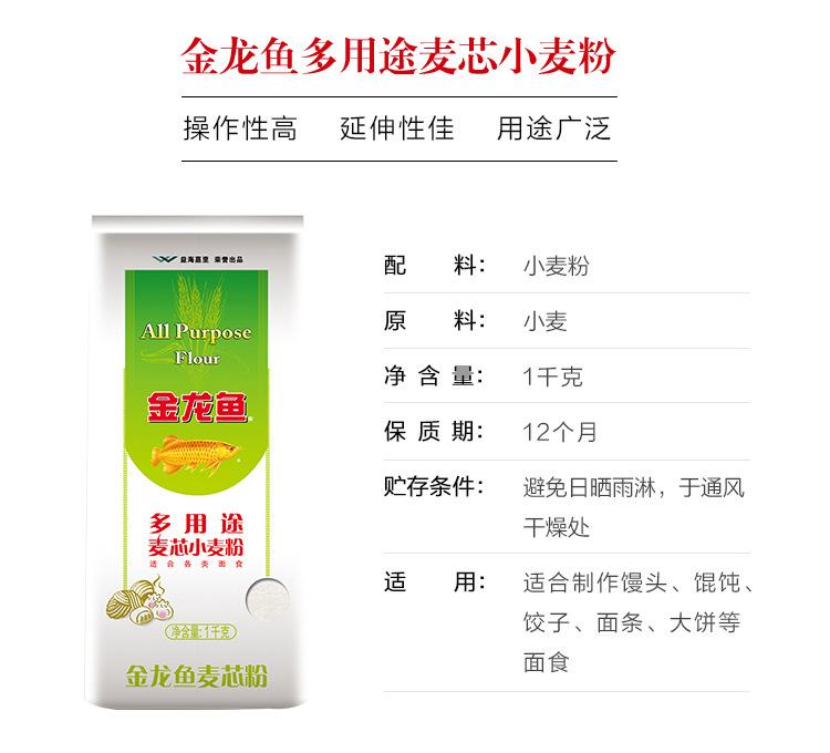 Harina Golden Dragon Alto Gluten/Propósito Múltiple Gluten Medio Harina de Núcleo de Trigo Bolsa de 1 kg Hogar Baozi Empanadillas Bollos al Vapor Fideos Estirados a Mano