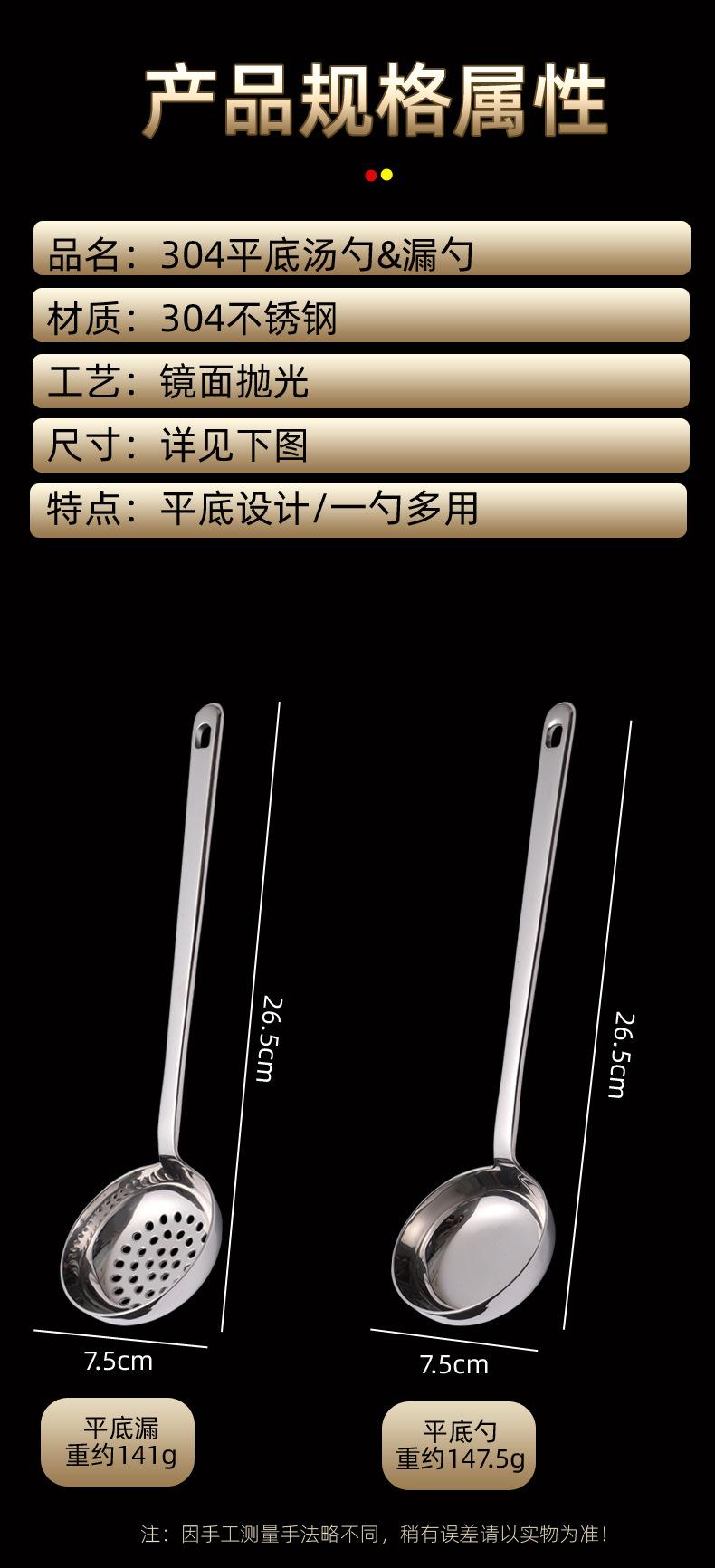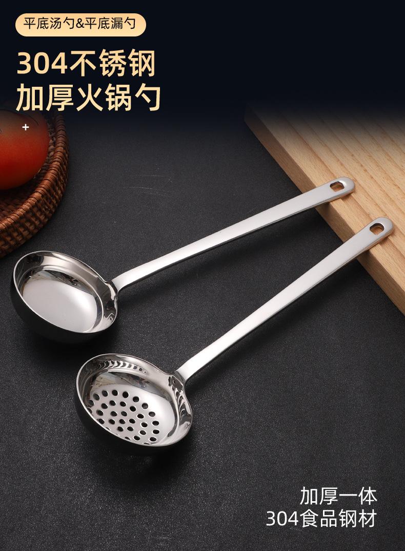 304 stainless steel flat bottom hot pot spoon, 304 stainless steel flat bottom hot pot soup drain, 304 stainle...