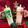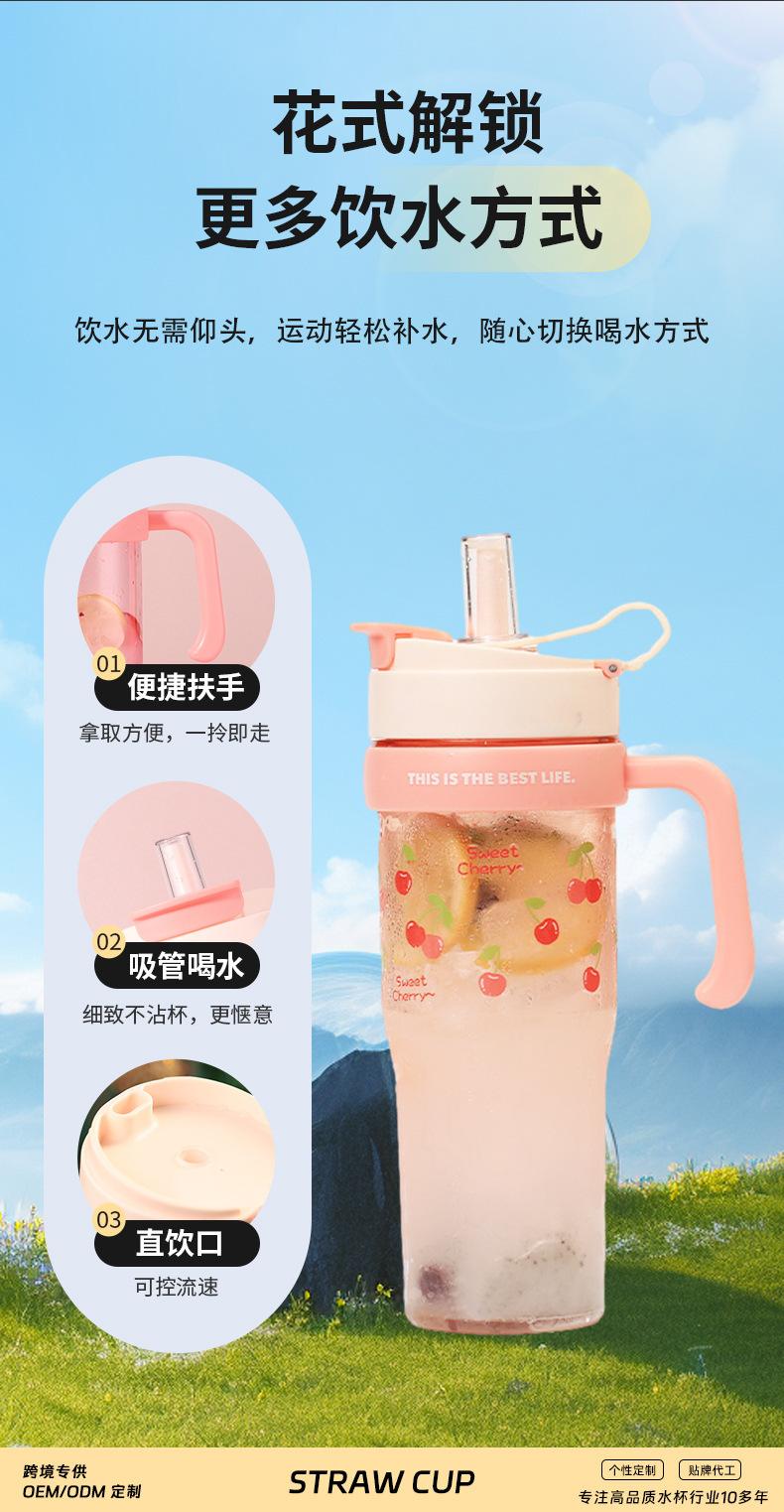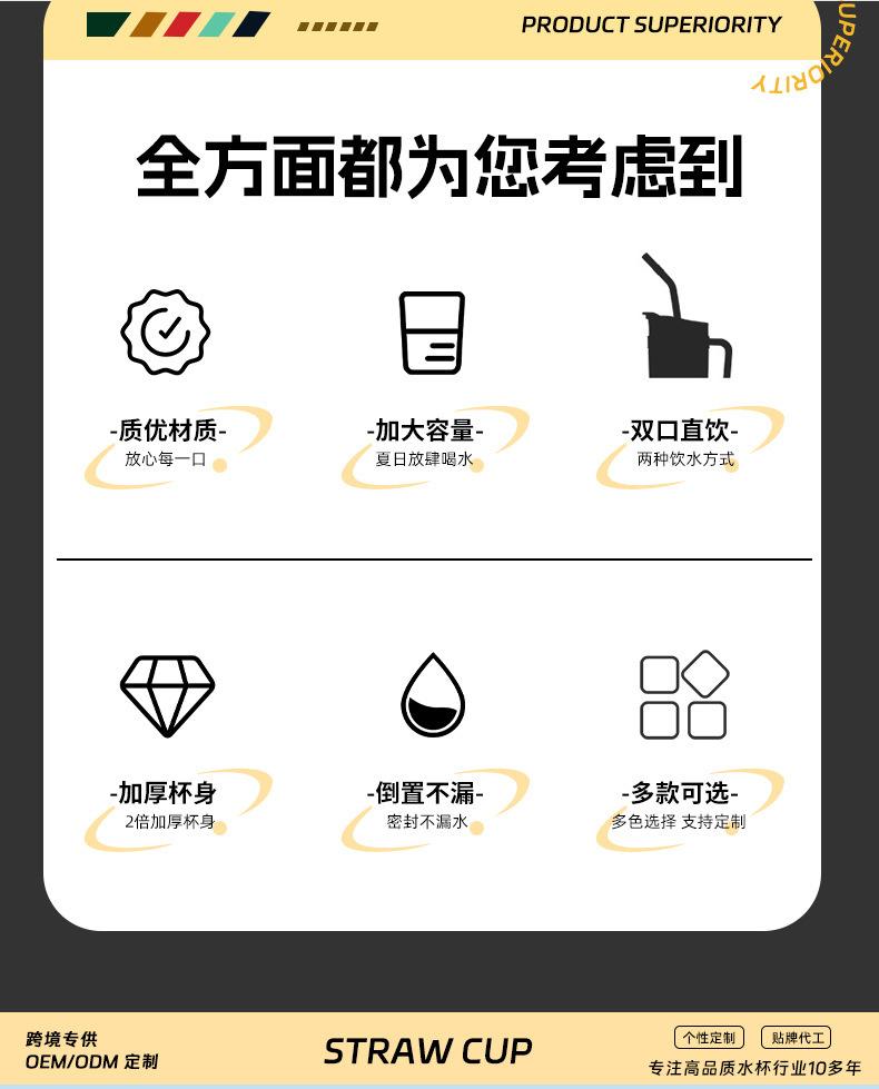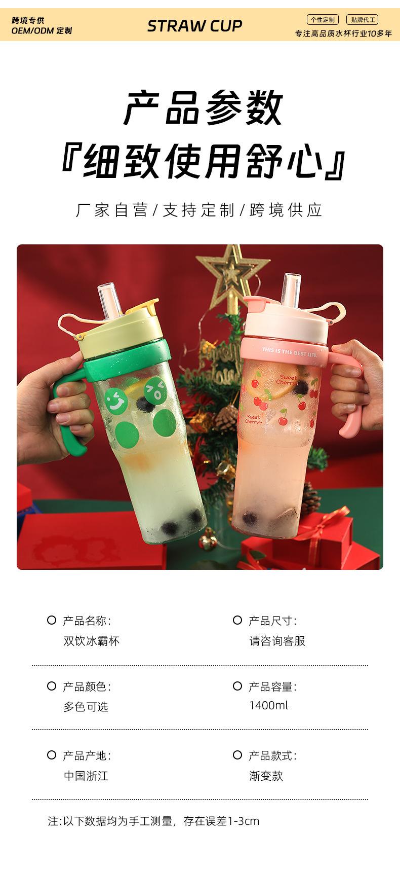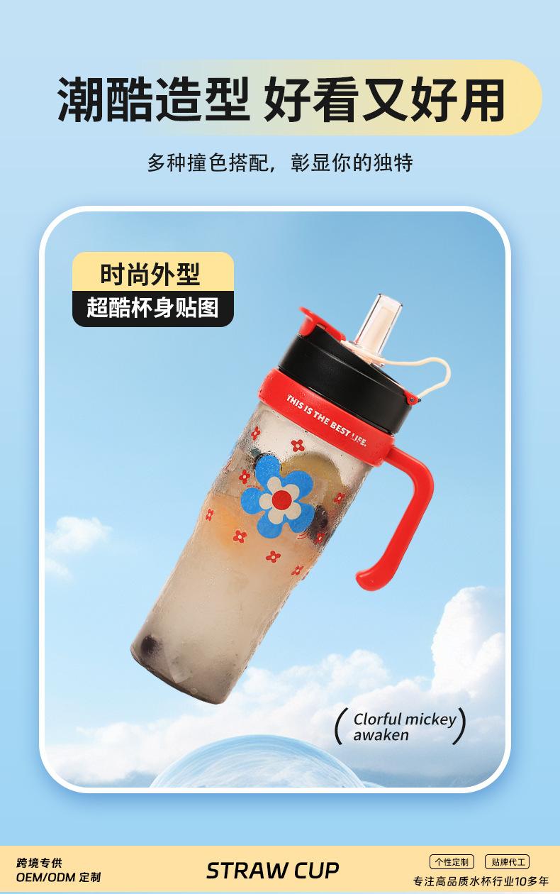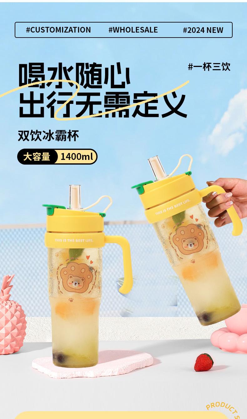 Vaso de Plástico, Vaso Fresco de Verano, Vaso de Agua de Gran Capacidad, Vaso de Aspecto Elegante, Vaso con Pajita, Vaso de Agua Deportivo, Vaso Helado para Doble Bebida