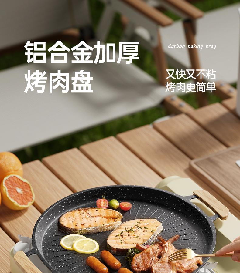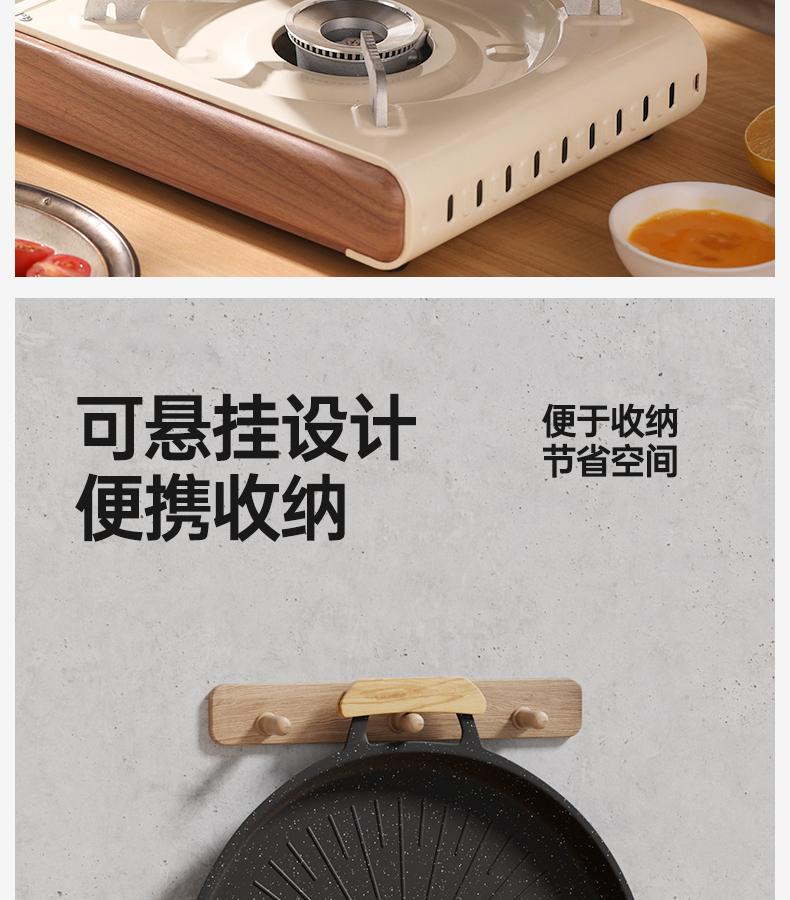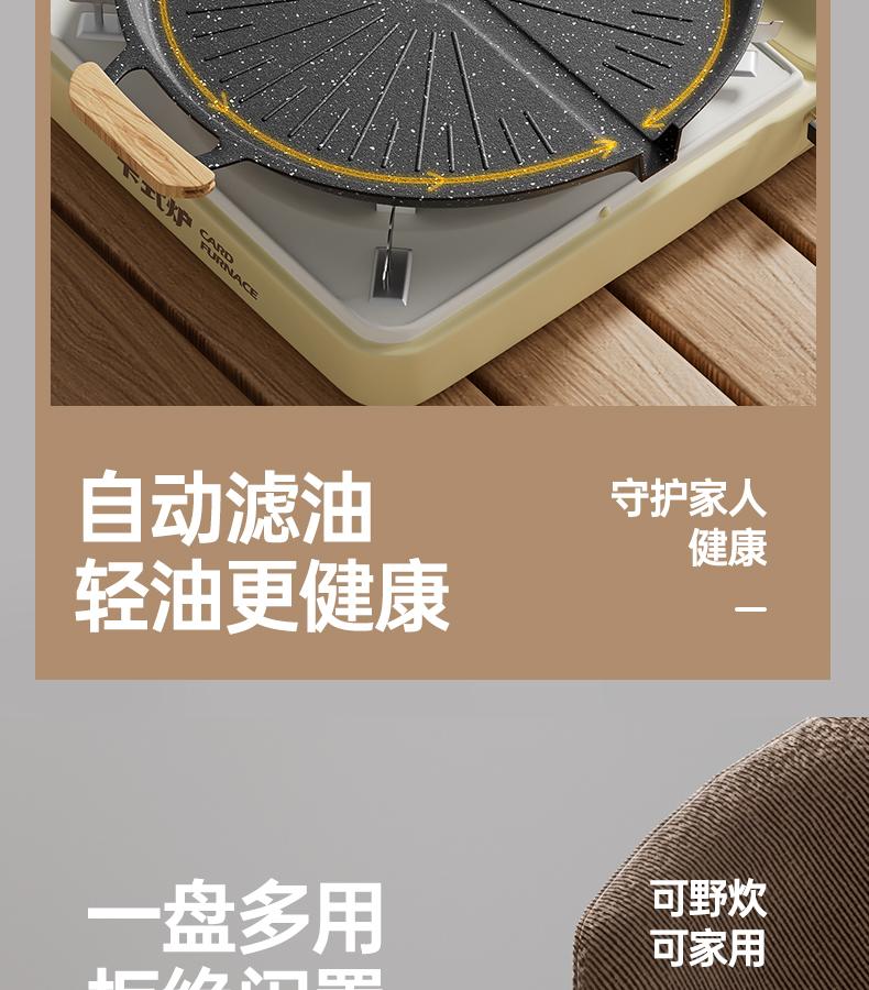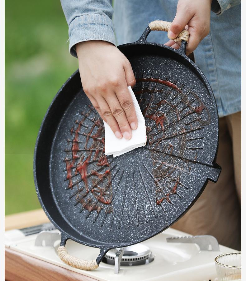 Automatic oil filter baking pan [open flame model] cassette stove + food clip + hemp rope + wooden handle + storage bag