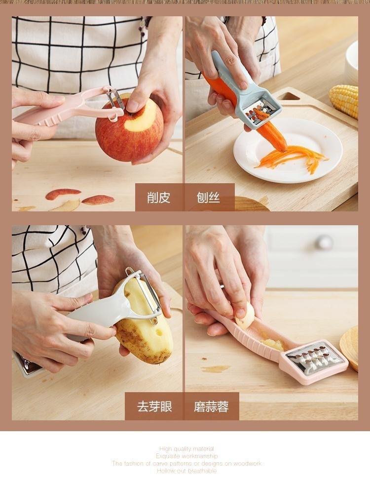 Pelador Multifuncional Cocina Fruta Pelador de Patatas Hogar Cuchillo Afeitador Cuatro en Uno Cepillo Multiusos Cepillo Pelador