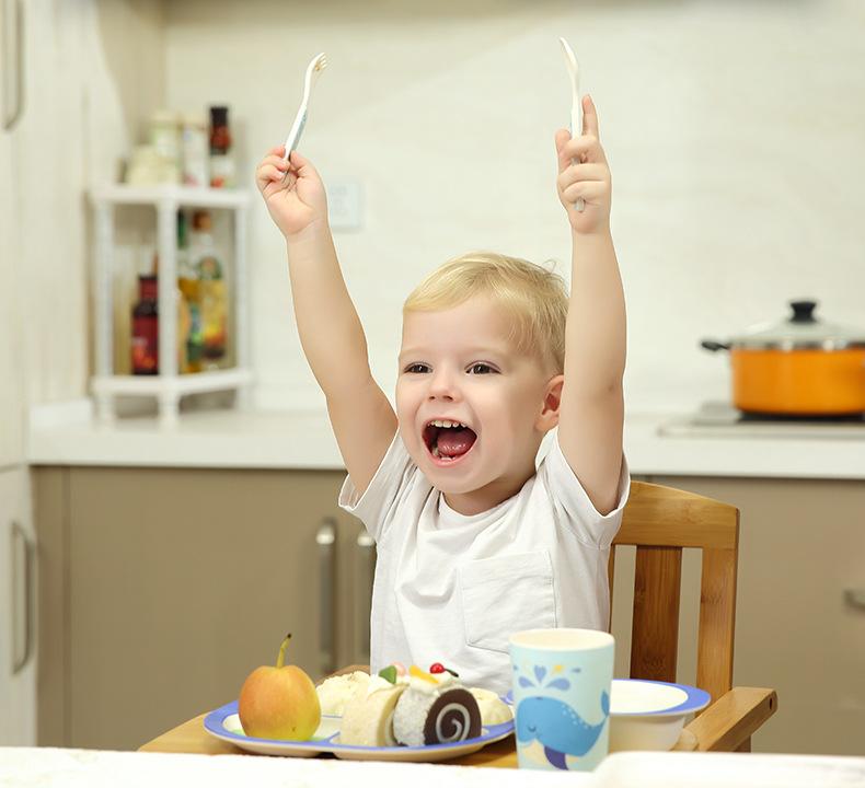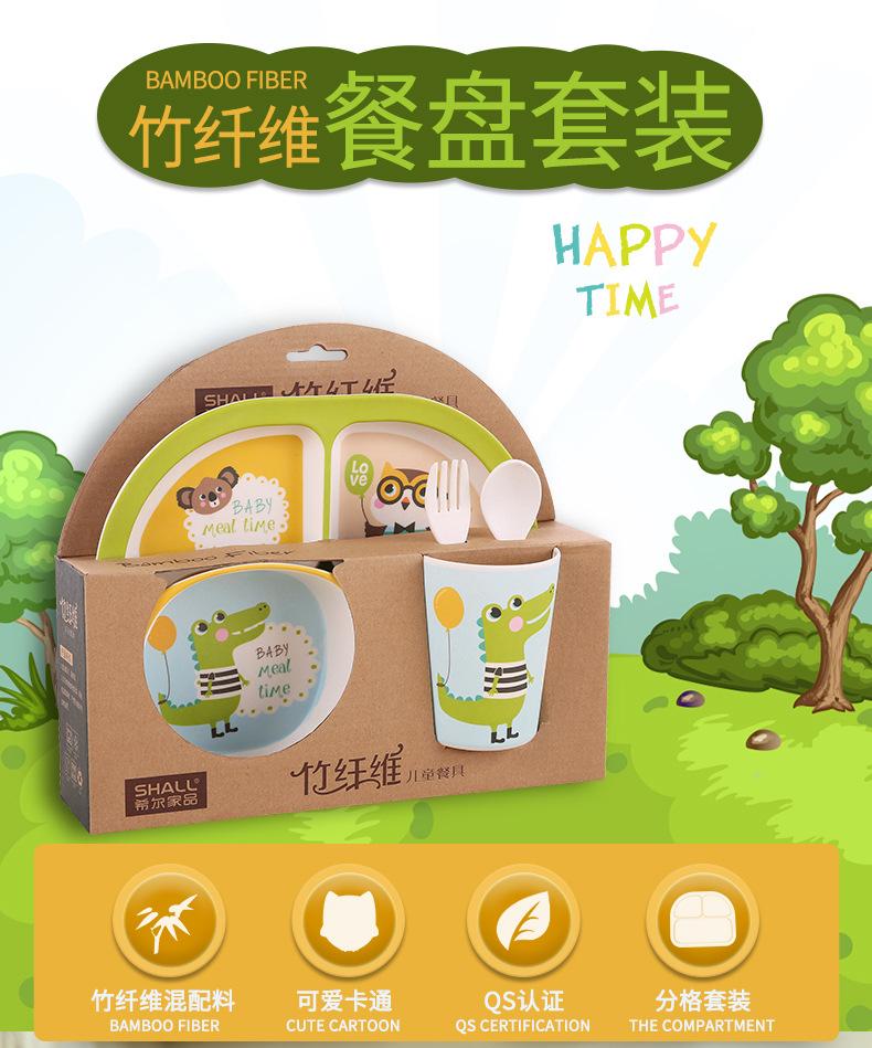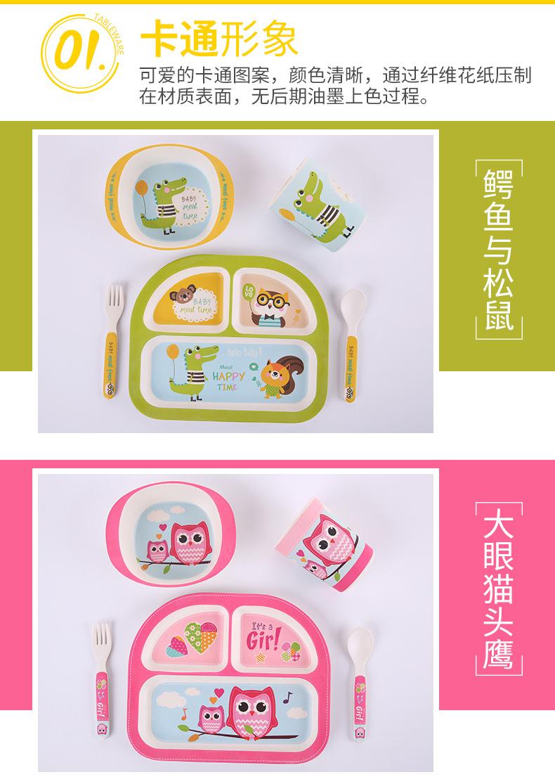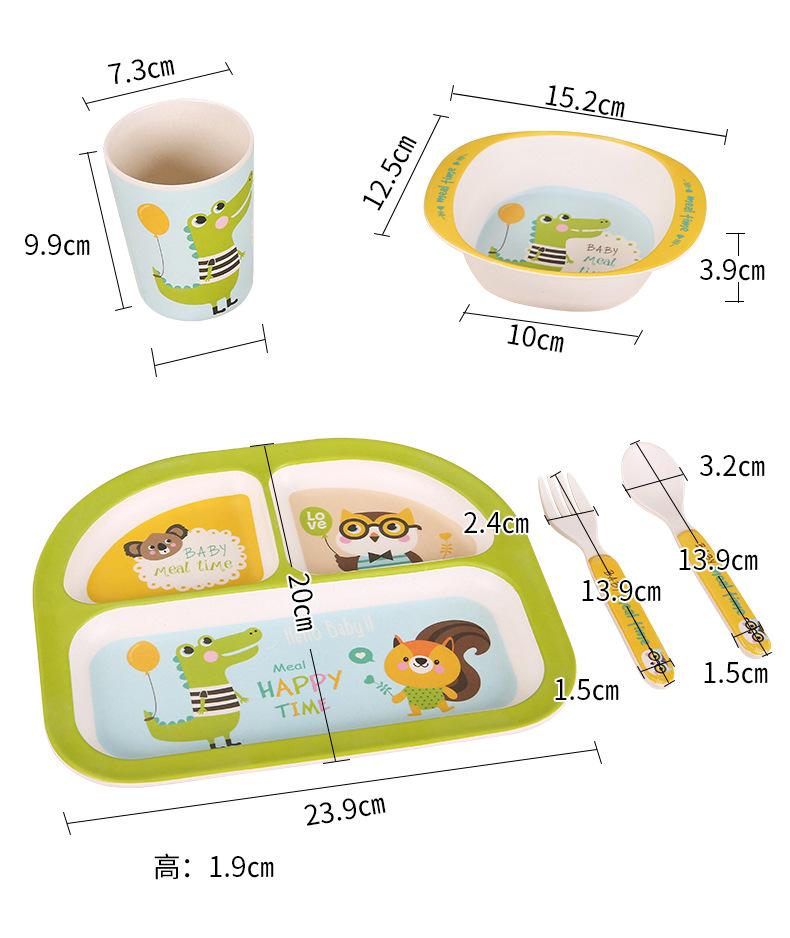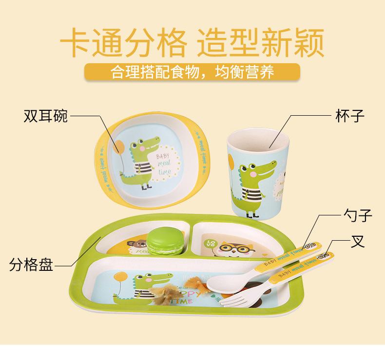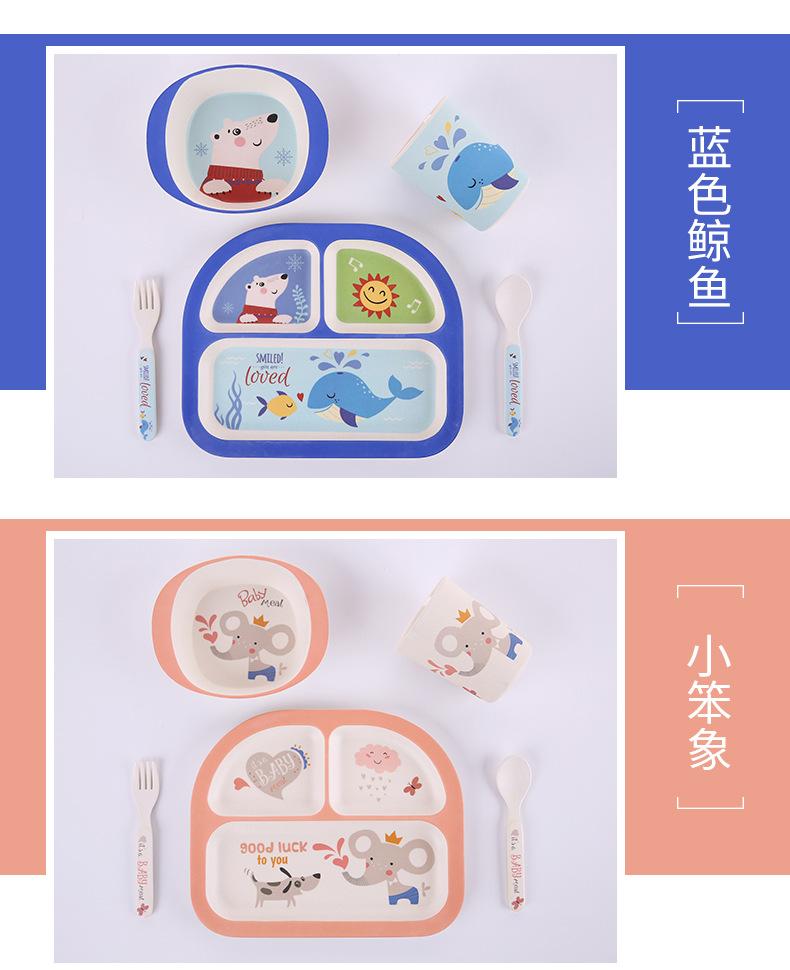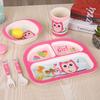 Juego de Vajilla Infantil de Fibra de Bambú Personalizado Juego de Cinco Piezas Plato Separado Tenedor Cuchara Vaso de Agua Tazón Pequeño Tazón para Comida Exportación Transfronteriza