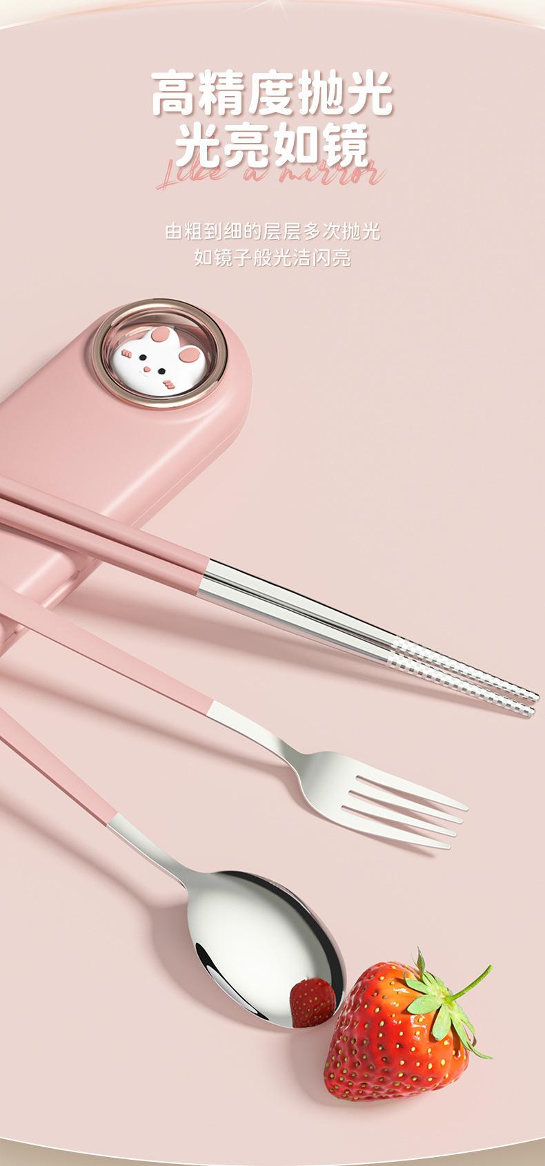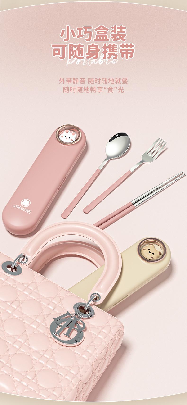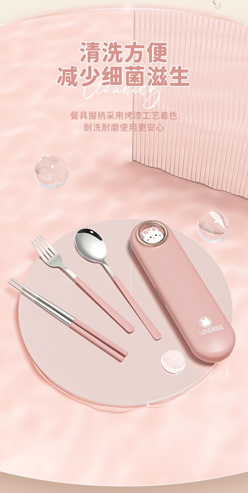 Pink 3-piece set (natural color chopsticks + spoon + fork)