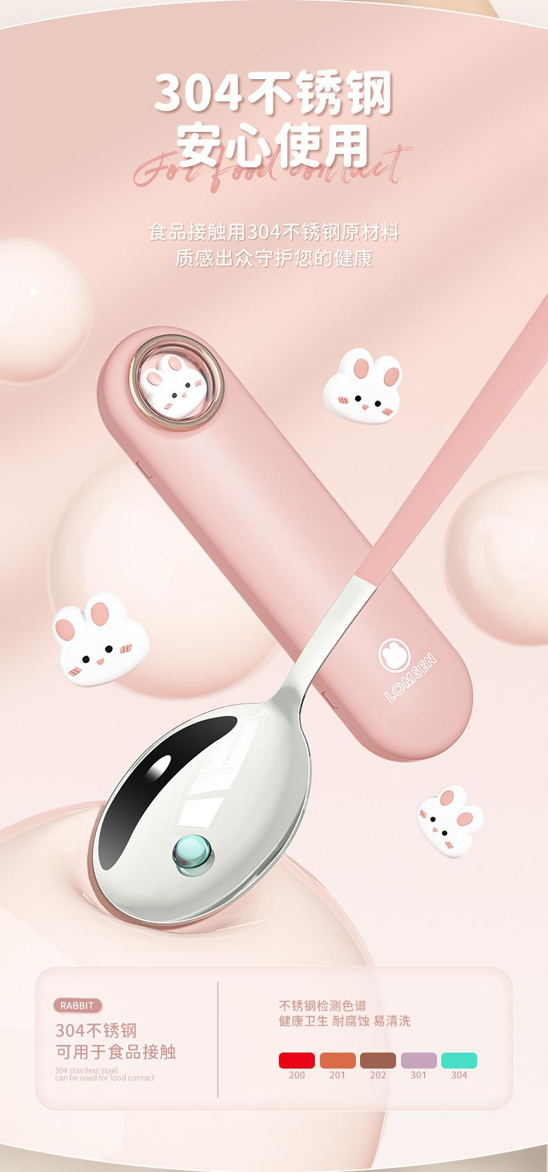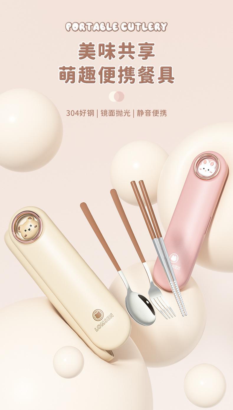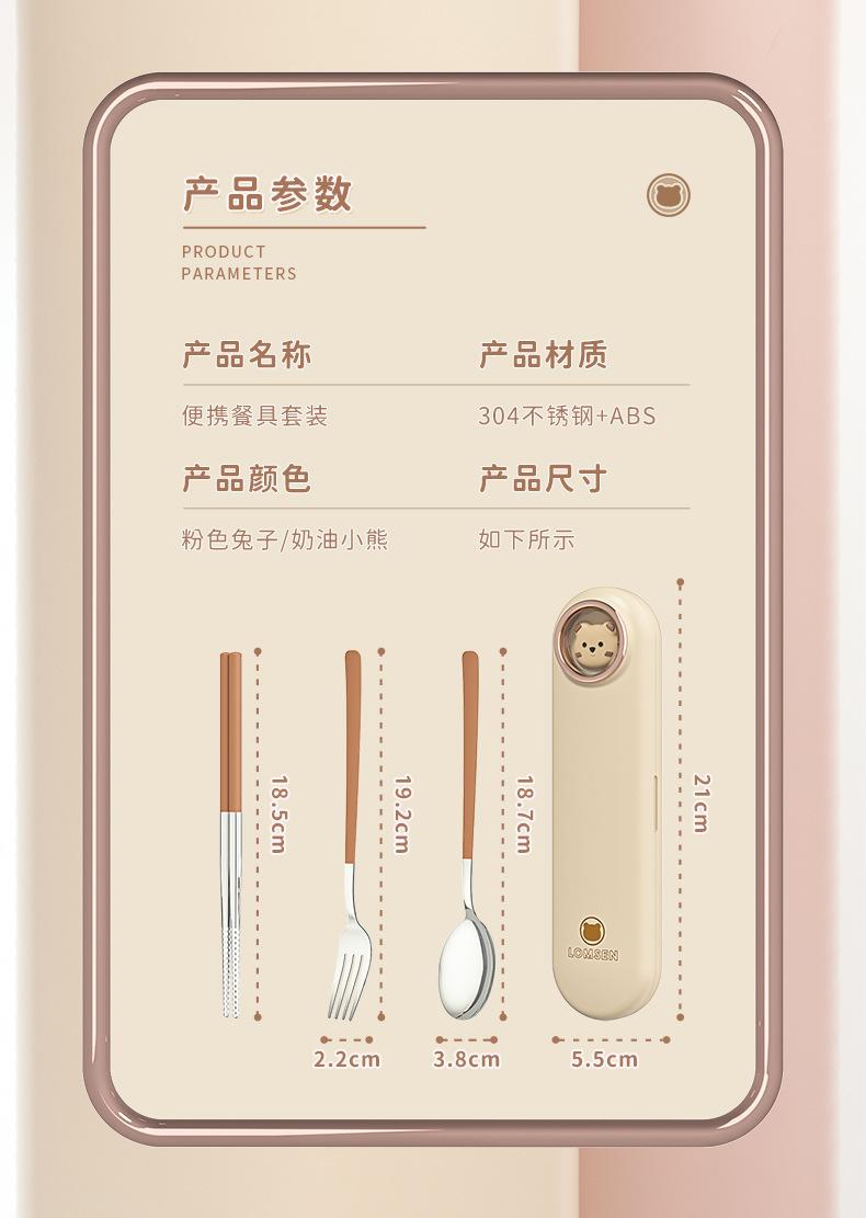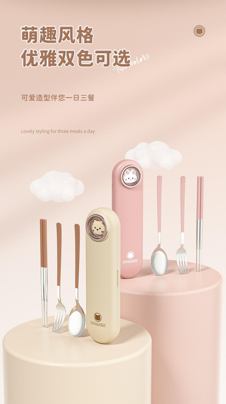 Pink 3-piece set (natural color chopsticks + spoon + fork)