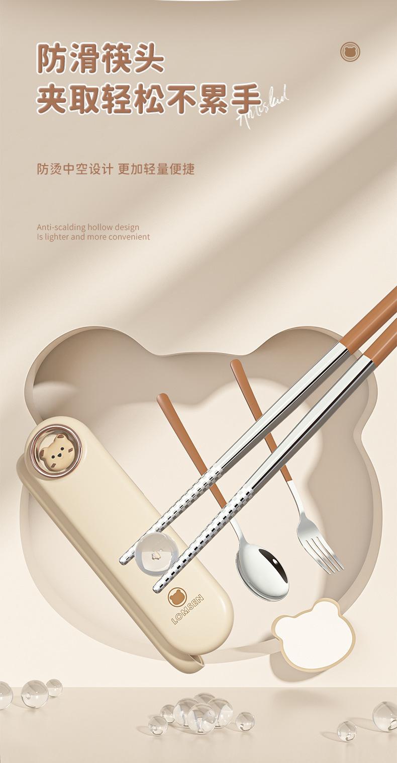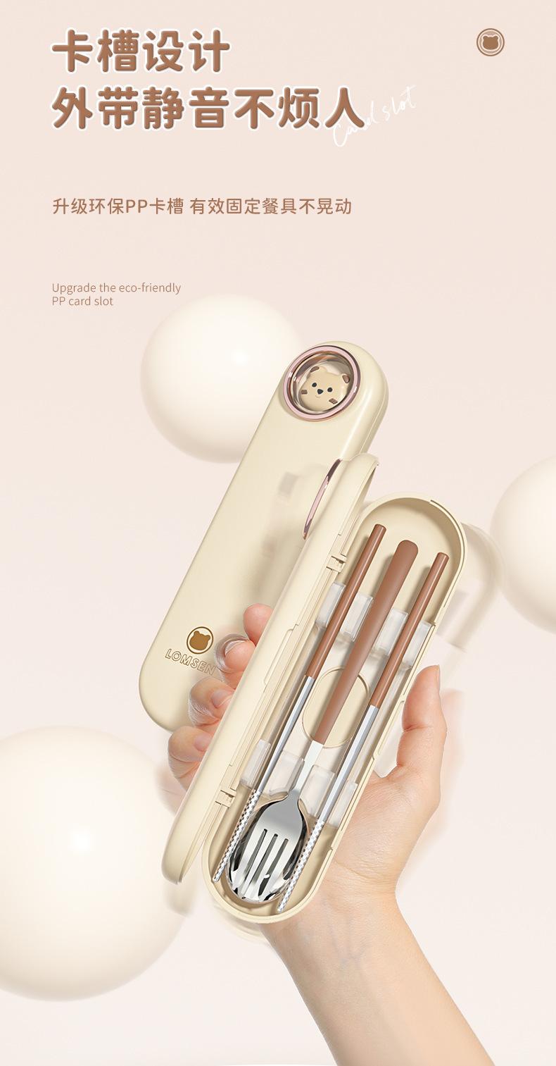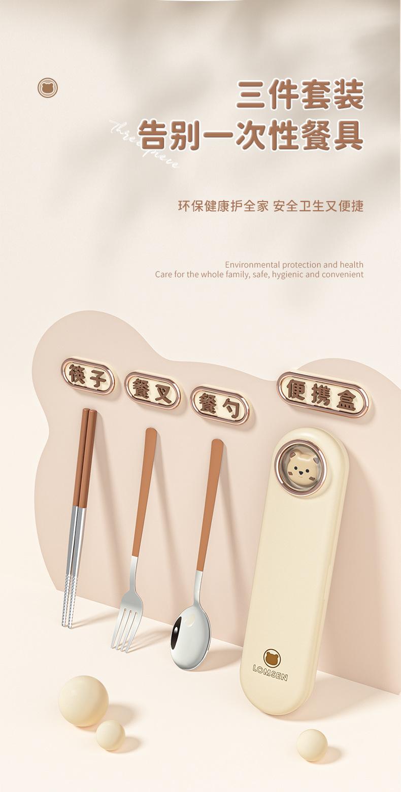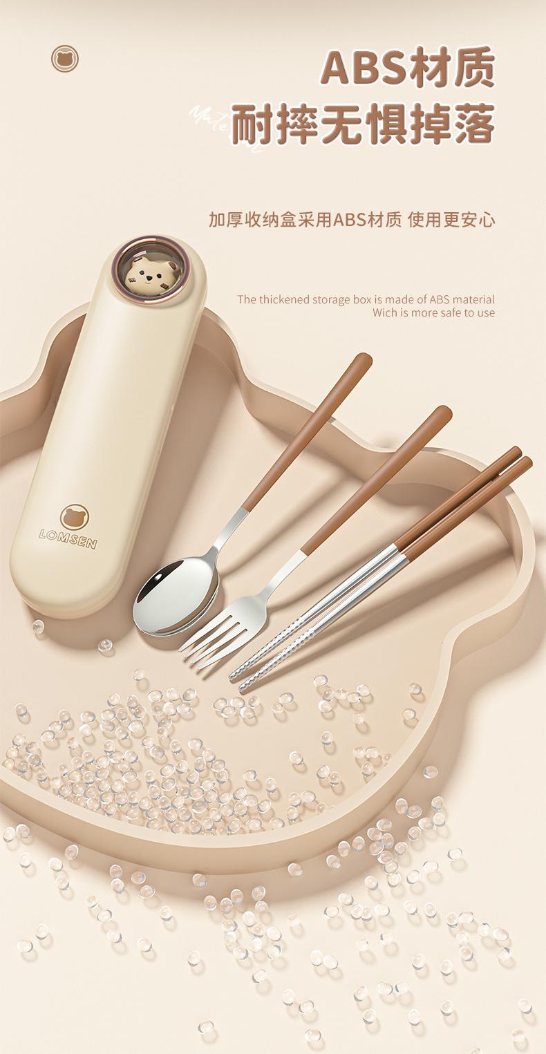 Juego de vajilla portátil de acero inoxidable 304, palillos, cucharas, tenedores y palillos para estudiantes, juego de vajilla de viaje de tres piezas