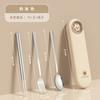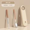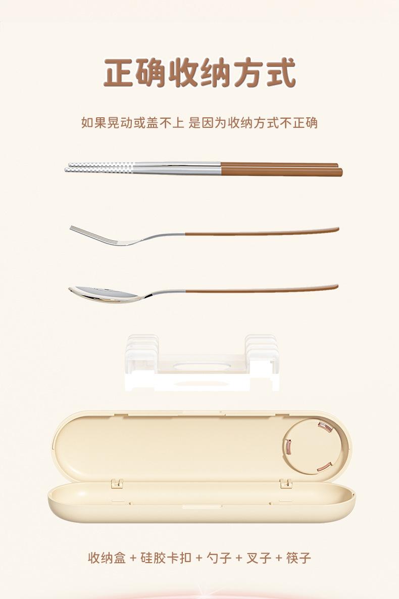 Cream 3-piece set (brown chopsticks + spoon + fork)