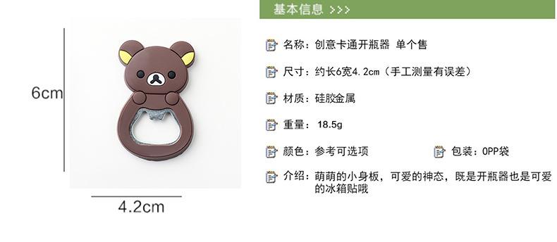 Abridor de Botellas de Dibujos Animados Lindo Silicona Multifuncional Creativo Pequeño Regalo Práctico con Imán Imán para Refrigerador 27g