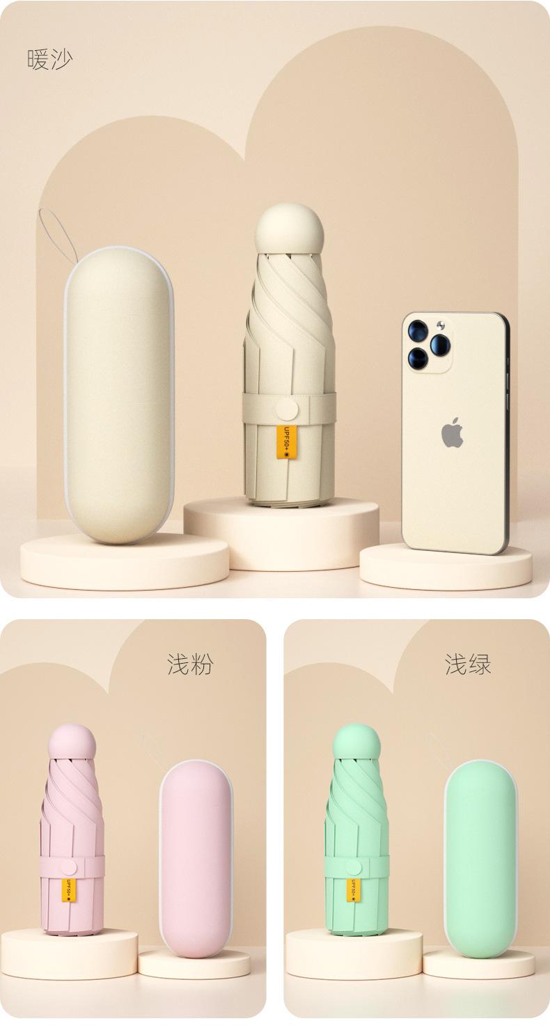 Sombrilla para Sol Mujer Protector Solar Anti-Ultravioleta Doble Uso Plegable Sombrilla Parasol Ligera Cápsula Portátil Pequeña