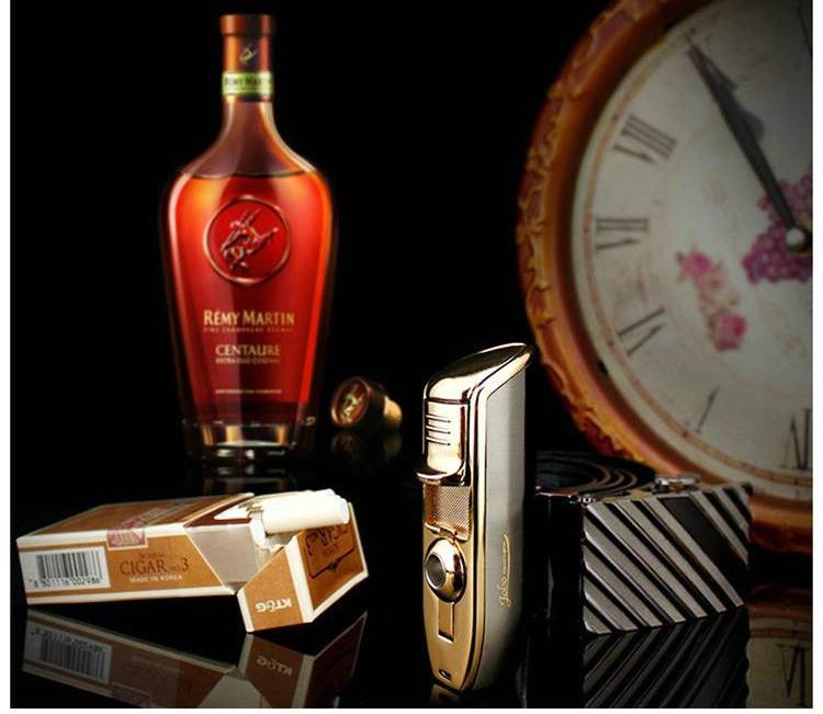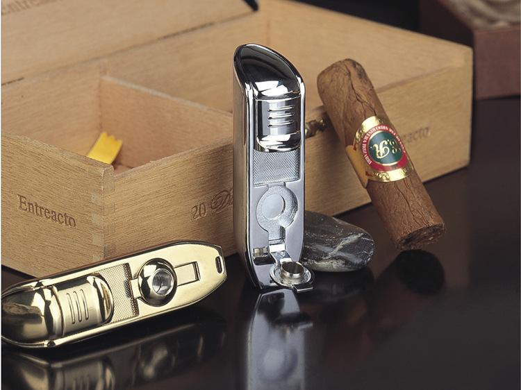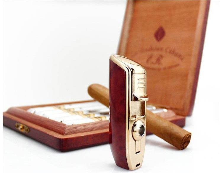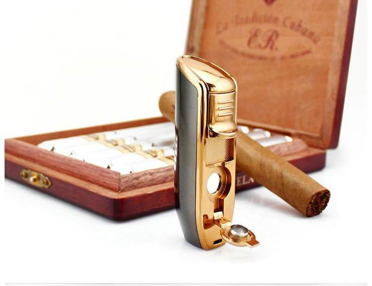 Encendedor de Cigarro Inflable Creativo Chino Tres Llamas Azules Rectas Multifuncional Metal Encendedor de Cigarro a Prueba de Viento Suministro Directo