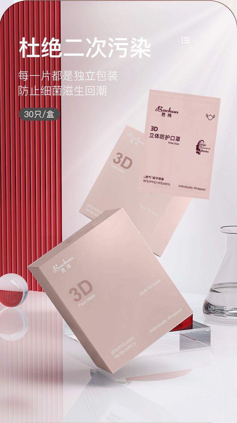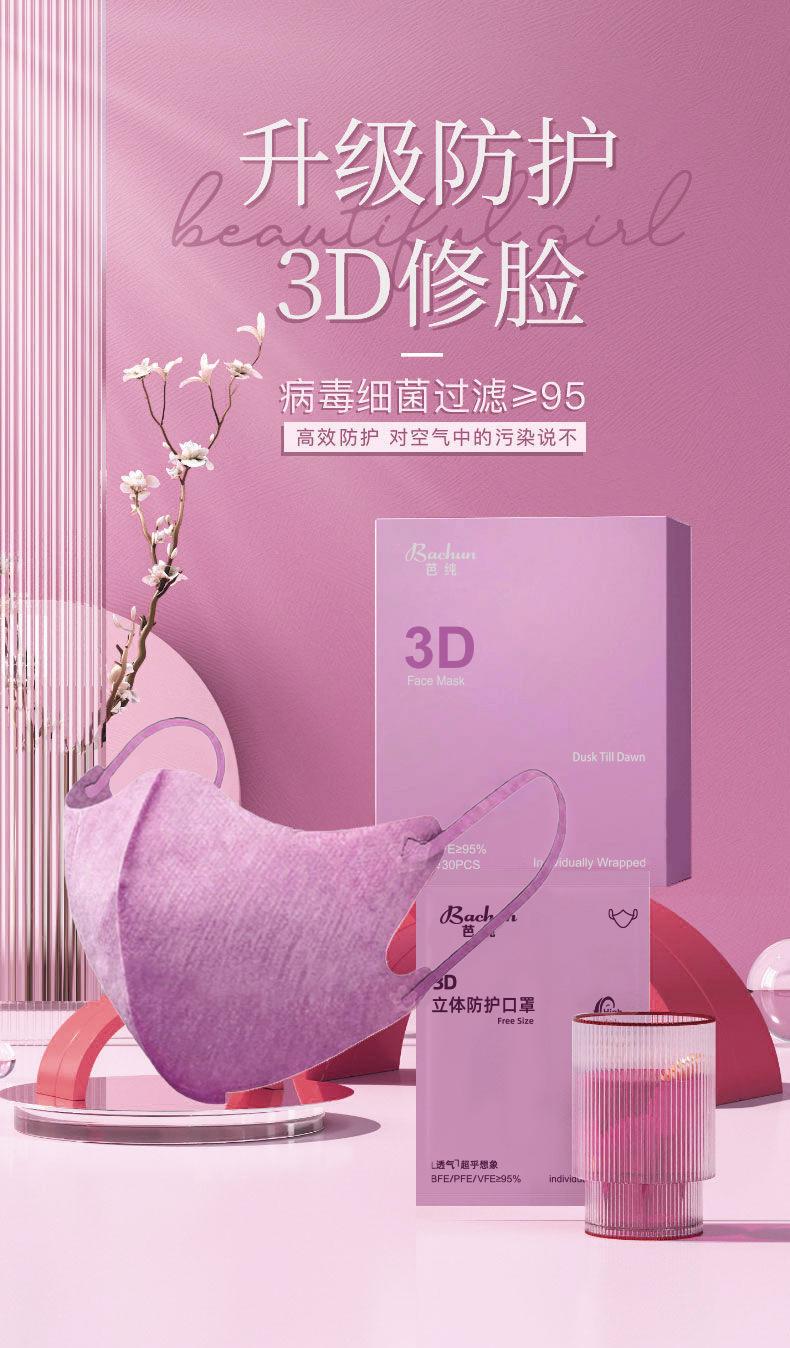 Mascarilla protectora solar tridimensional 3D para mujer, empaque individual, alto valor, primavera y verano, Morandi, transpirable, de tres capas, al por mayor
