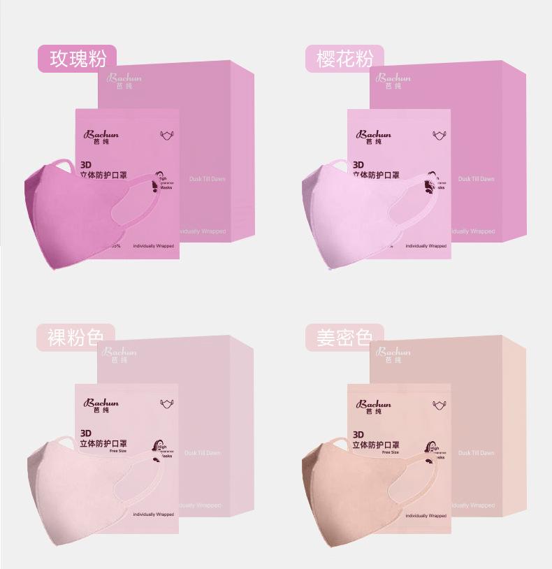 New ba chun mask ginger color (boxed), New ba chun mask blue water blue (boxed), New ba chun mask nude pink (b...