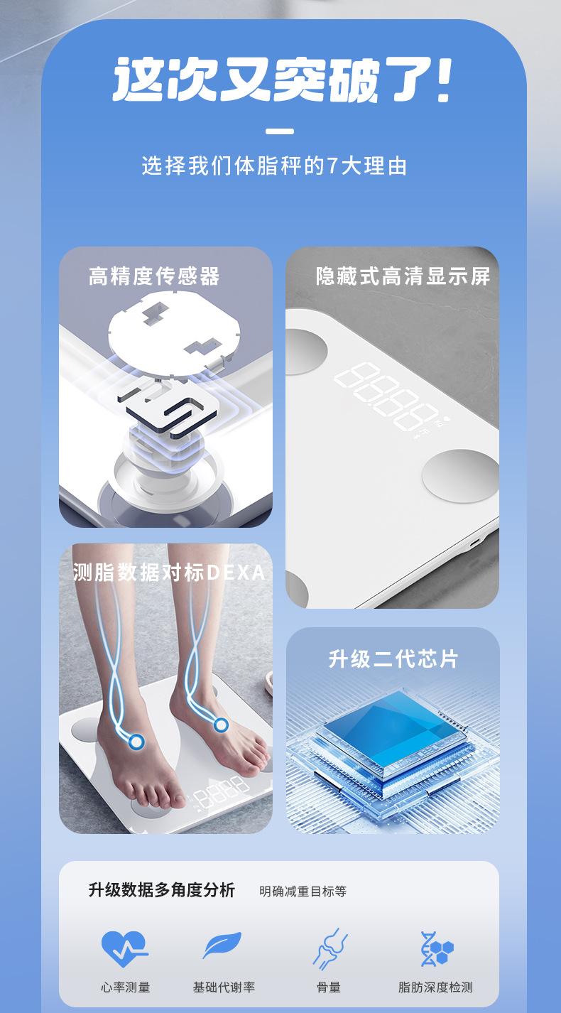 Báscula de Peso Corporal Doméstica Precisa Inteligente Báscula de Grasa Corporal Recargable Inteligente Bluetooth Escala Electrónica de Cuerpo Humano Medidor de Pesaje para Medir Grasa