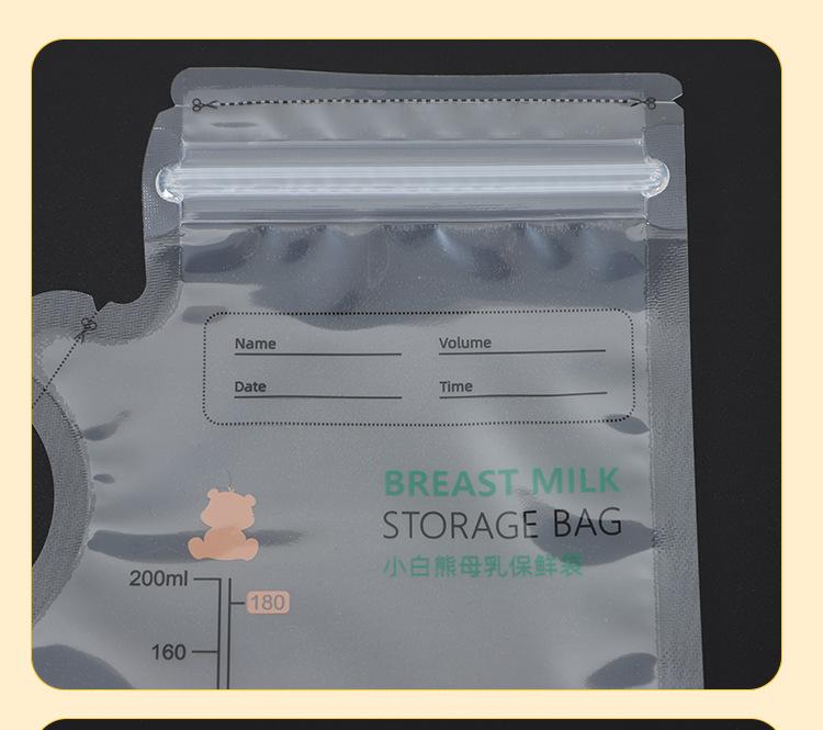 Bolsa para congelador de 250 ml con boquilla de pie a prueba de fugas, f soporte, personalización de impresión de tamaño, bolsa para almacenamiento de leche materna cruda