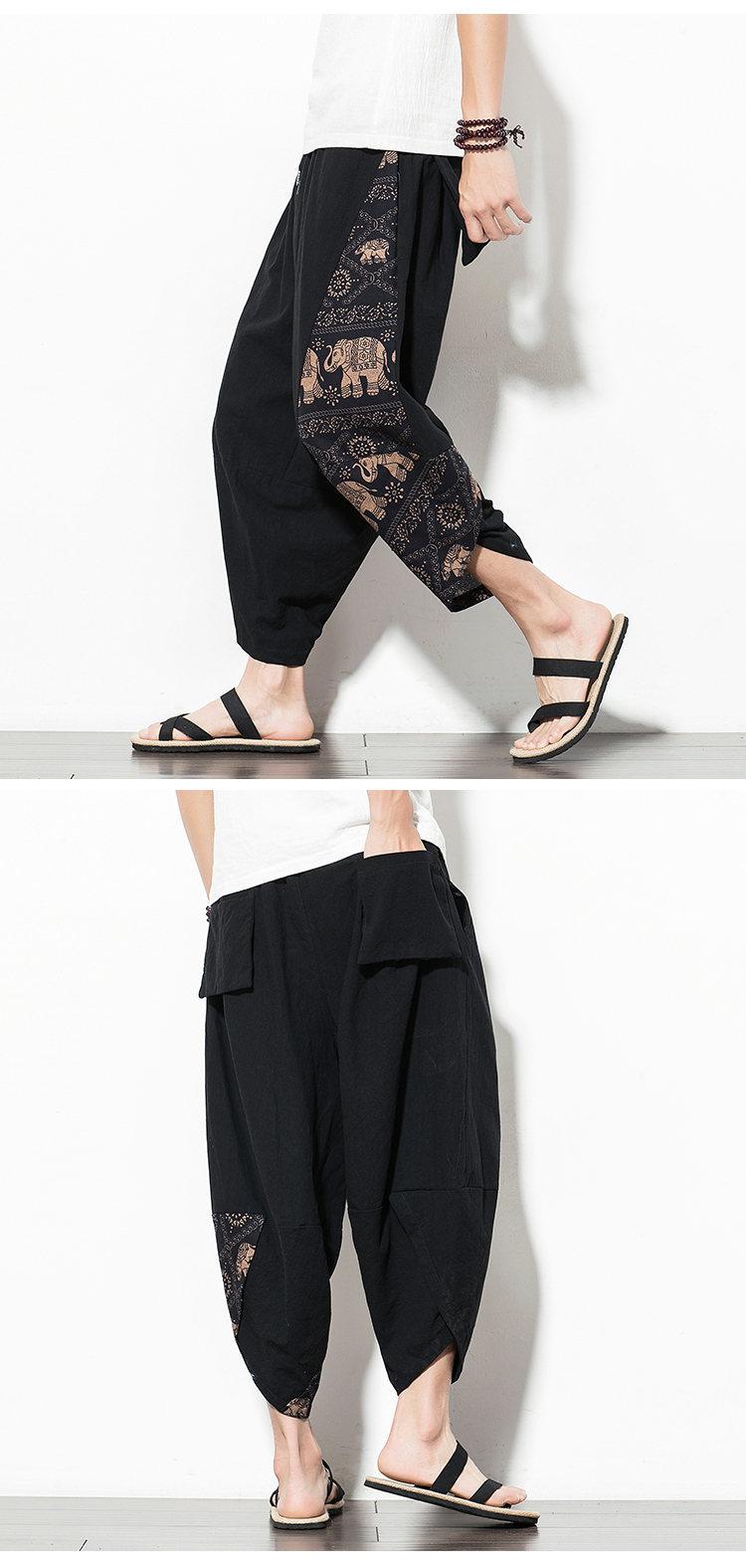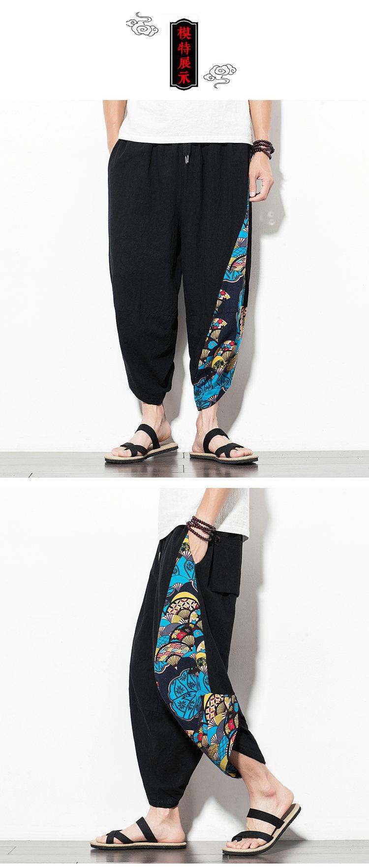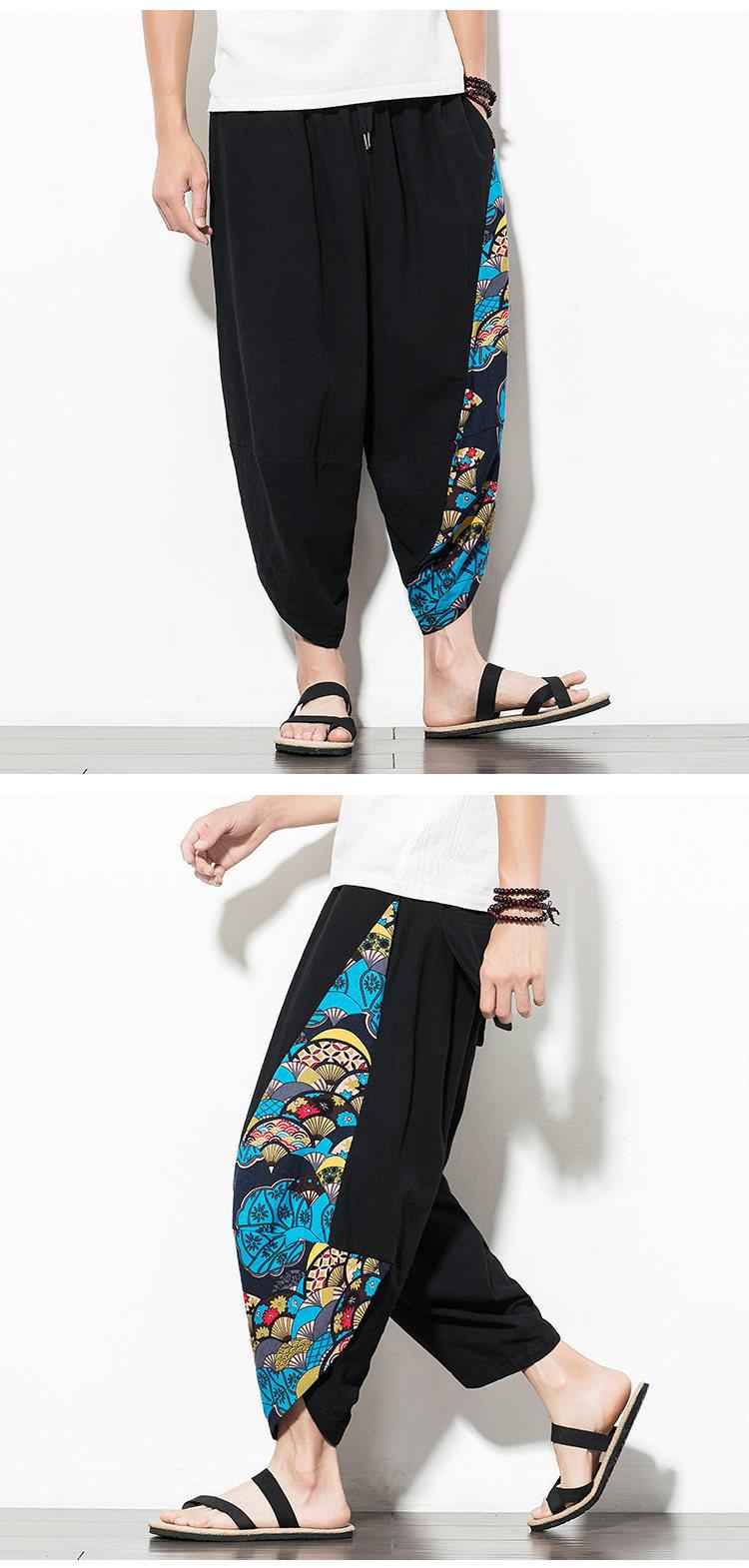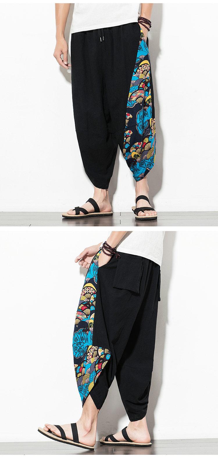 Pantalones casuales de verano para hombre 2023, estilo chino, algodón lino, holgados, de pierna ancha, bombachos, estilo étnico, pantalones harén para hombre