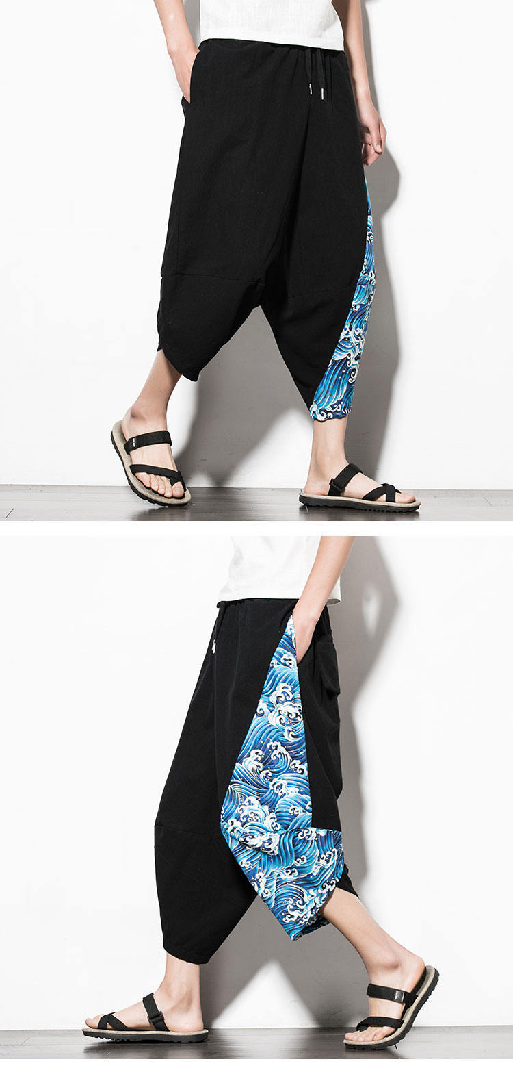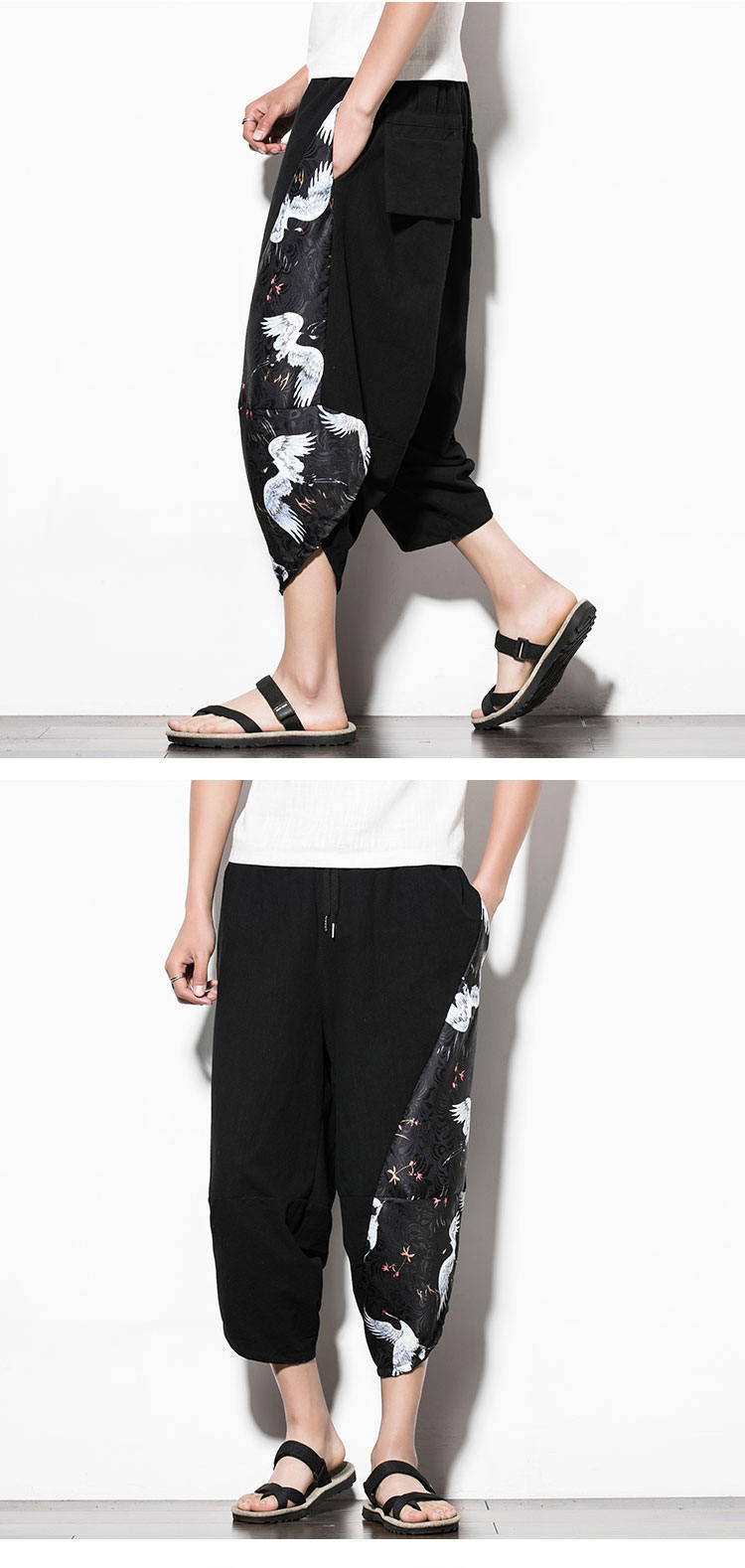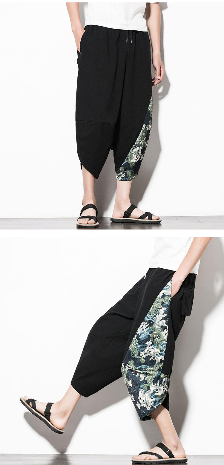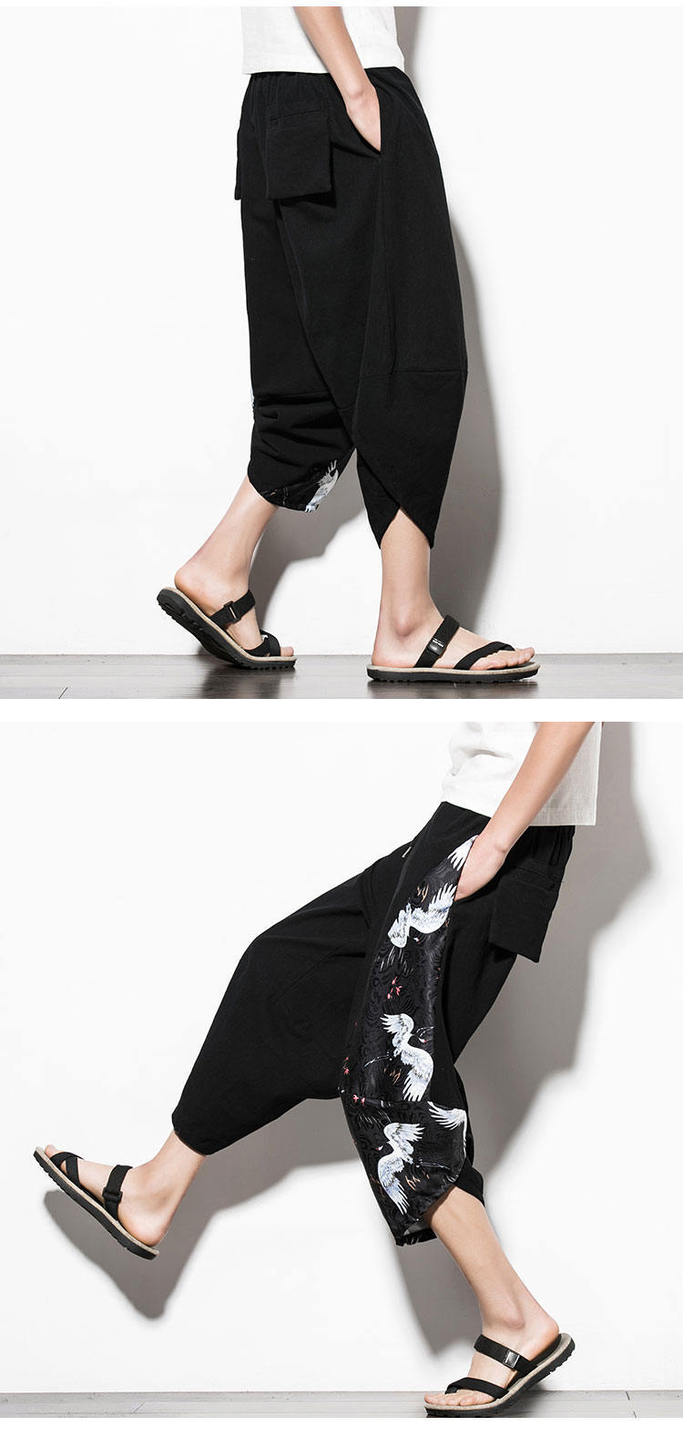 Pantalones casuales de verano para hombre 2023, estilo chino, algodón lino, holgados, de pierna ancha, bombachos, estilo étnico, pantalones harén para hombre