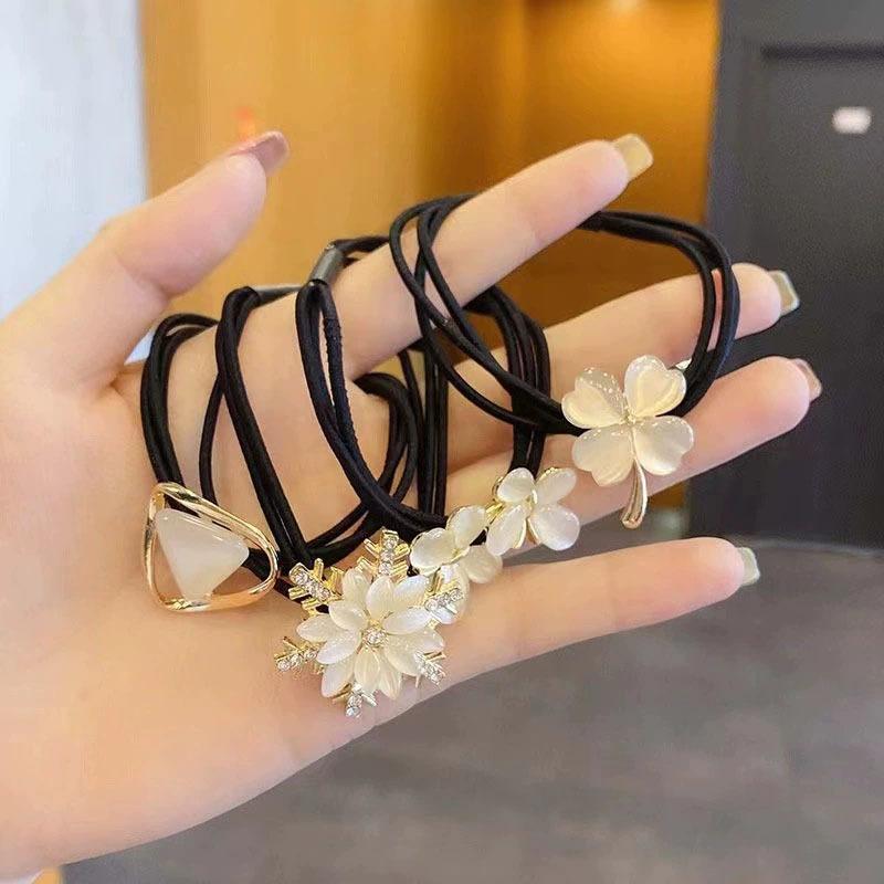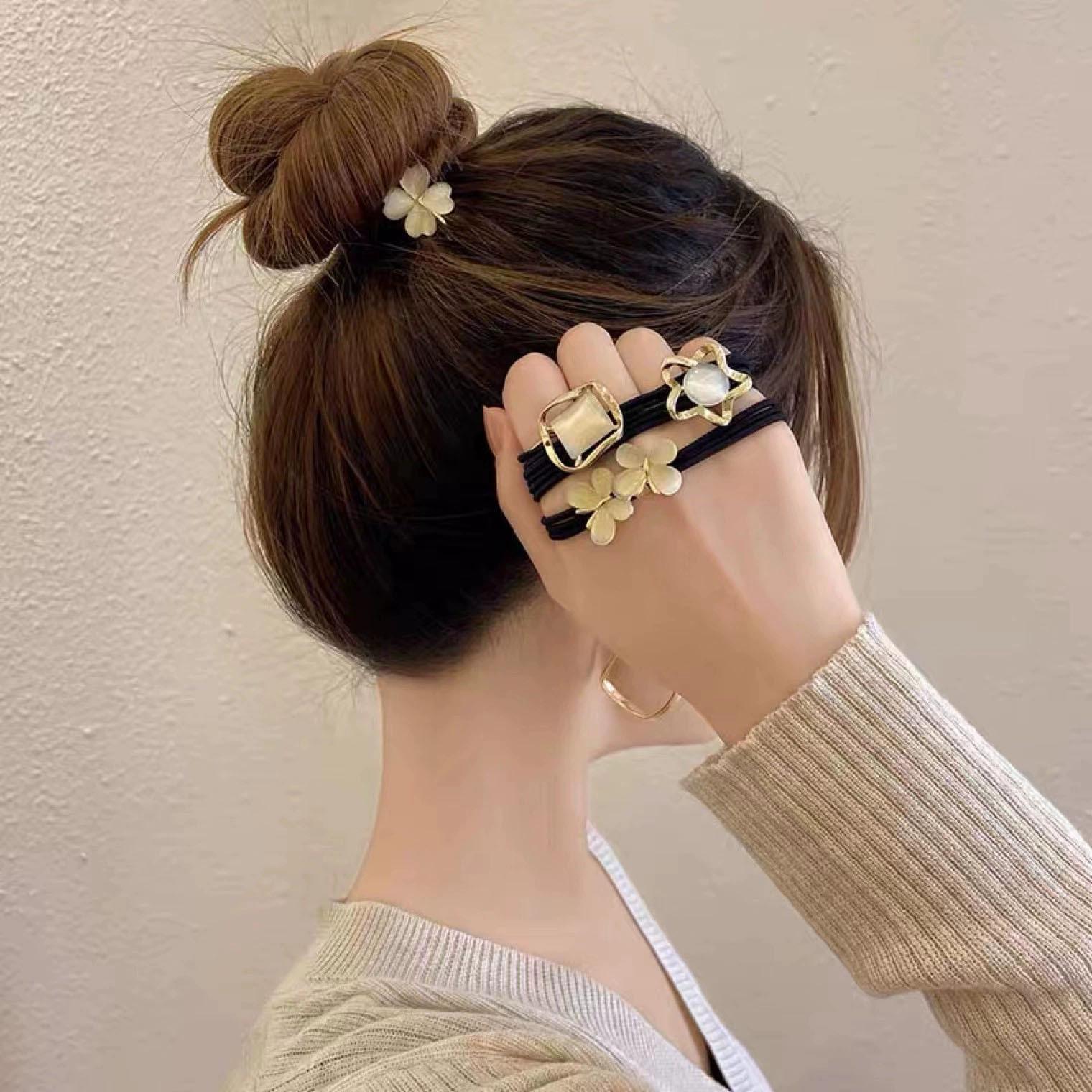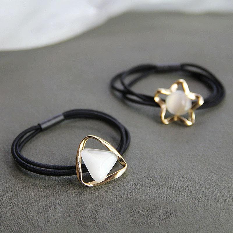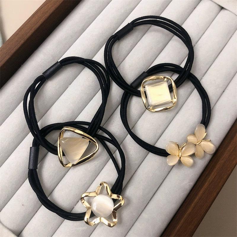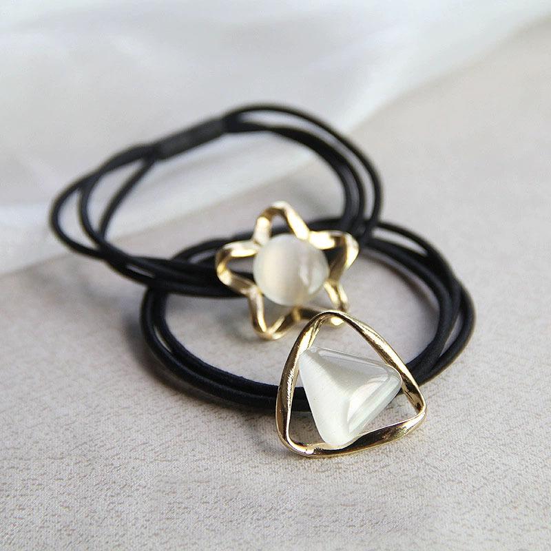 Anillo para el cabello geométrico hueco transfronterizo Cuerda ojo de gato para mujer Estilo japonés-coreano Tocado sencillo Verano Elegante Liga de goma Anillo para el cabello
