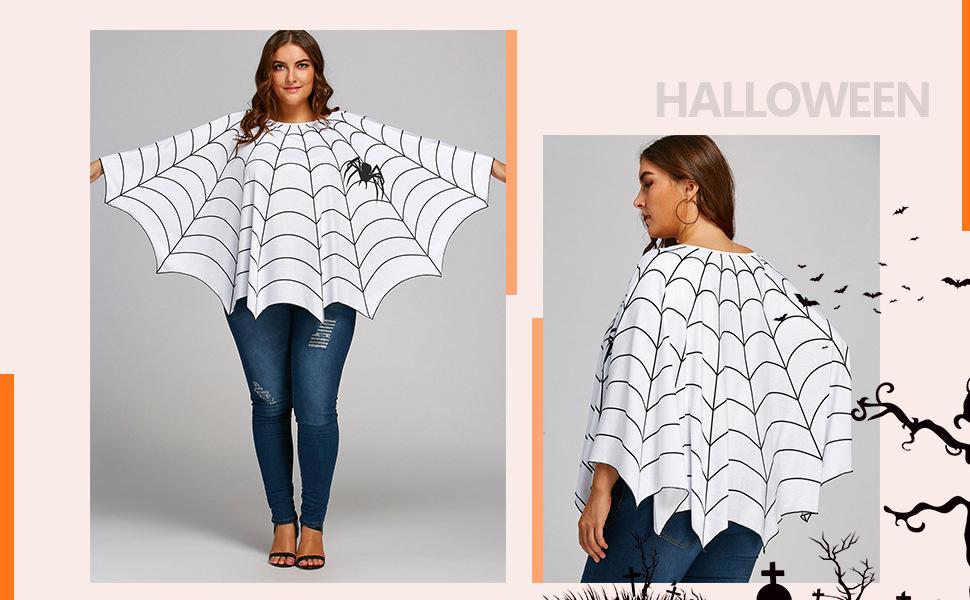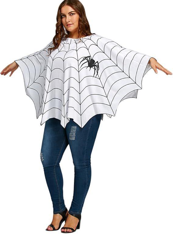 Disfraz de Halloween Top Abullonado con Estampado de Telaraña Vestido para Mujer Fiesta de Disfraces Cosplay
