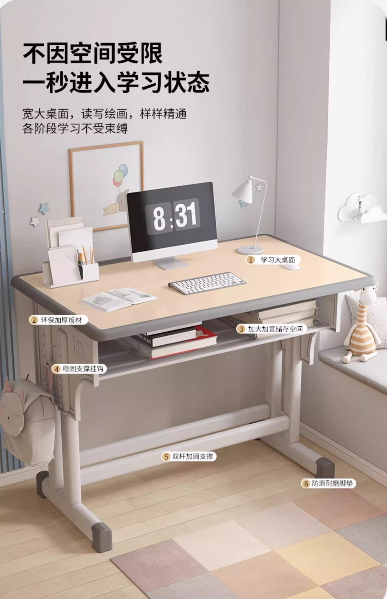 School same style upgraded reinforced parallel bars + large desktop 70*50 - gray and white