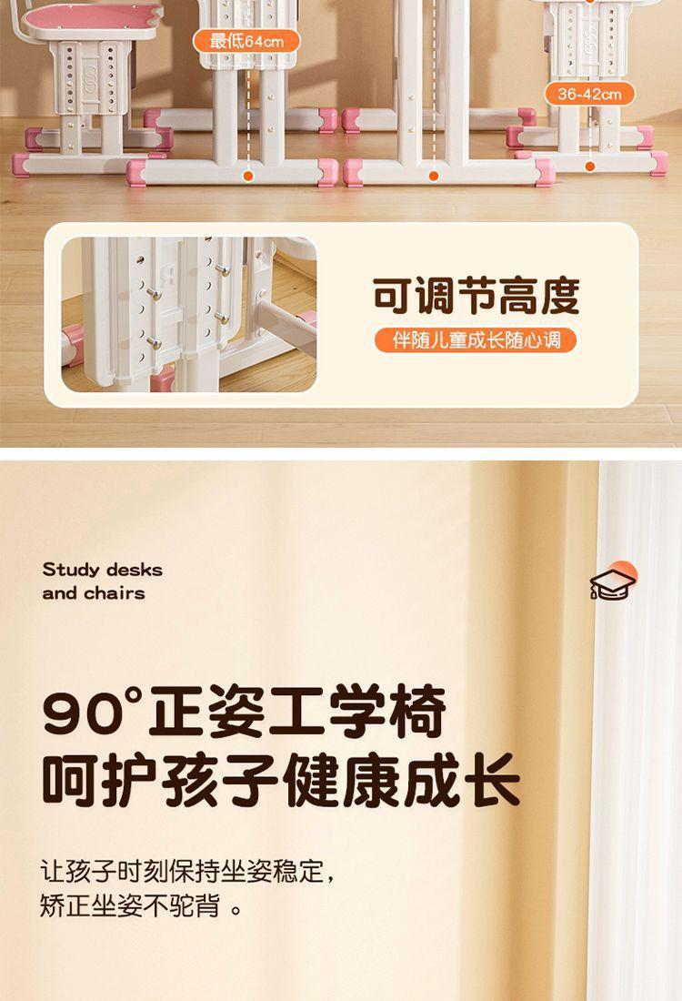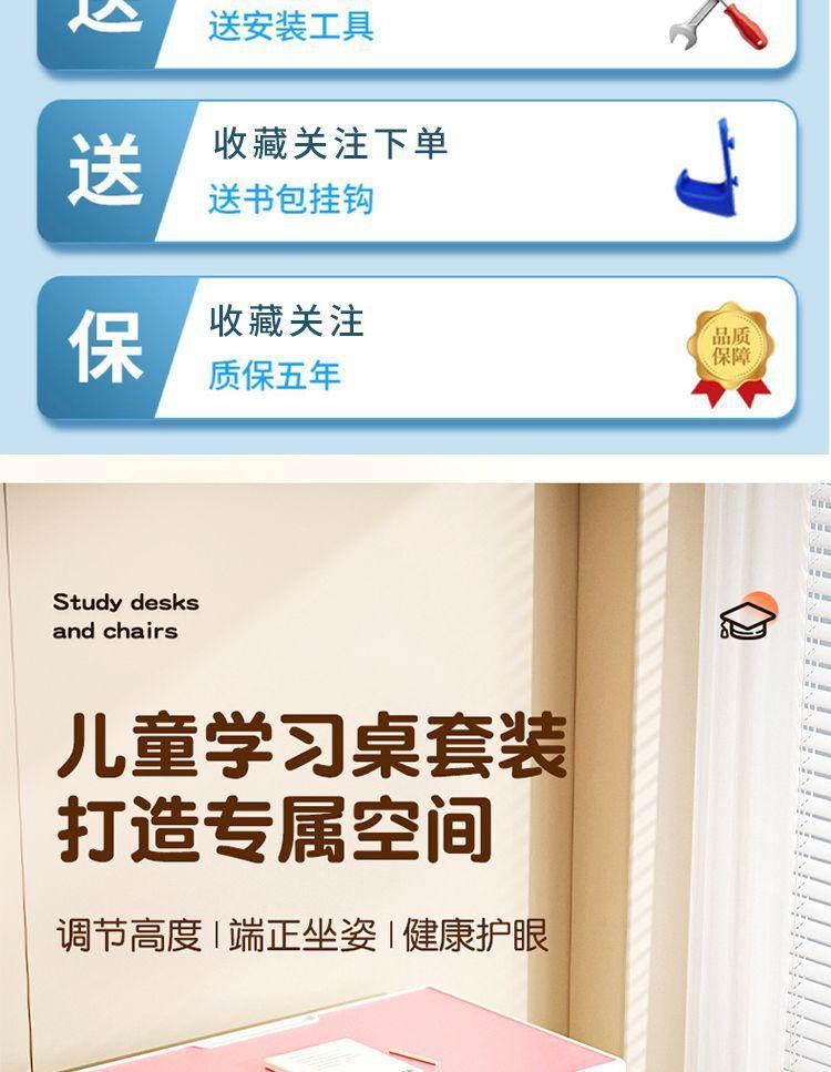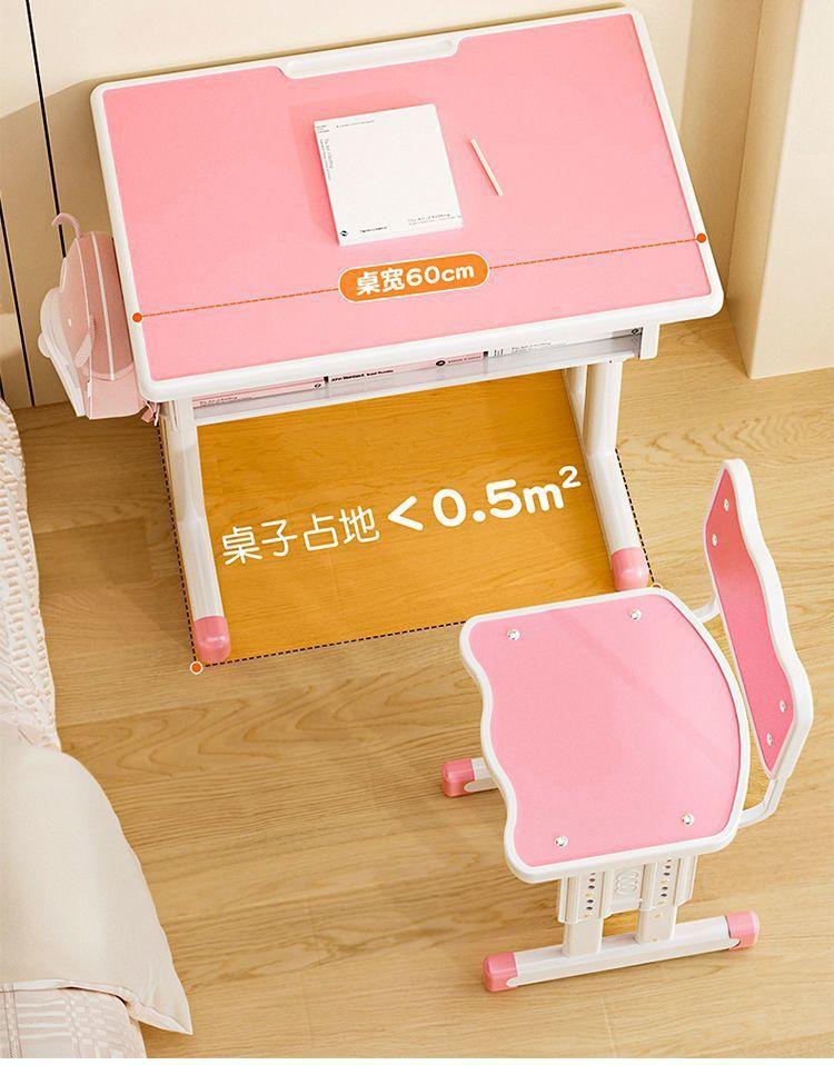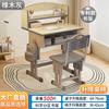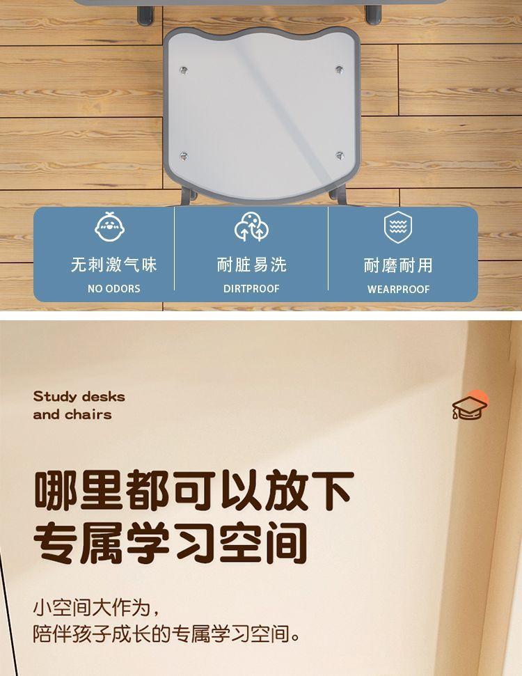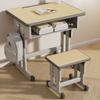 Height-Adjustable Desk and Chair Stool - Free Hook【A60 Set】Natural Wood, School style height-adjustable desk a...