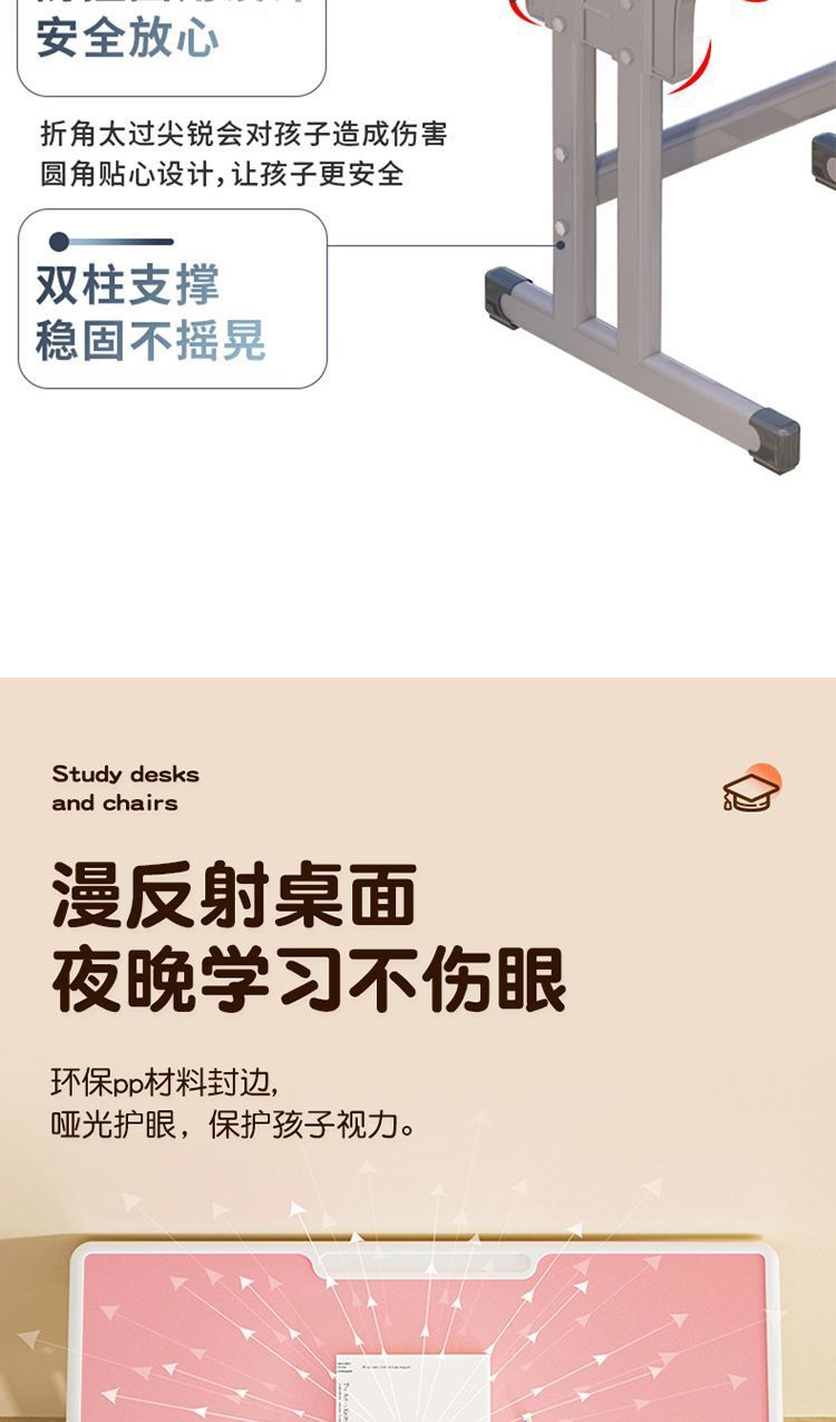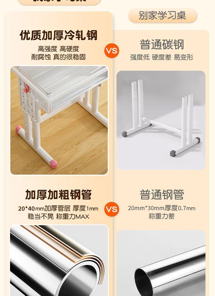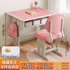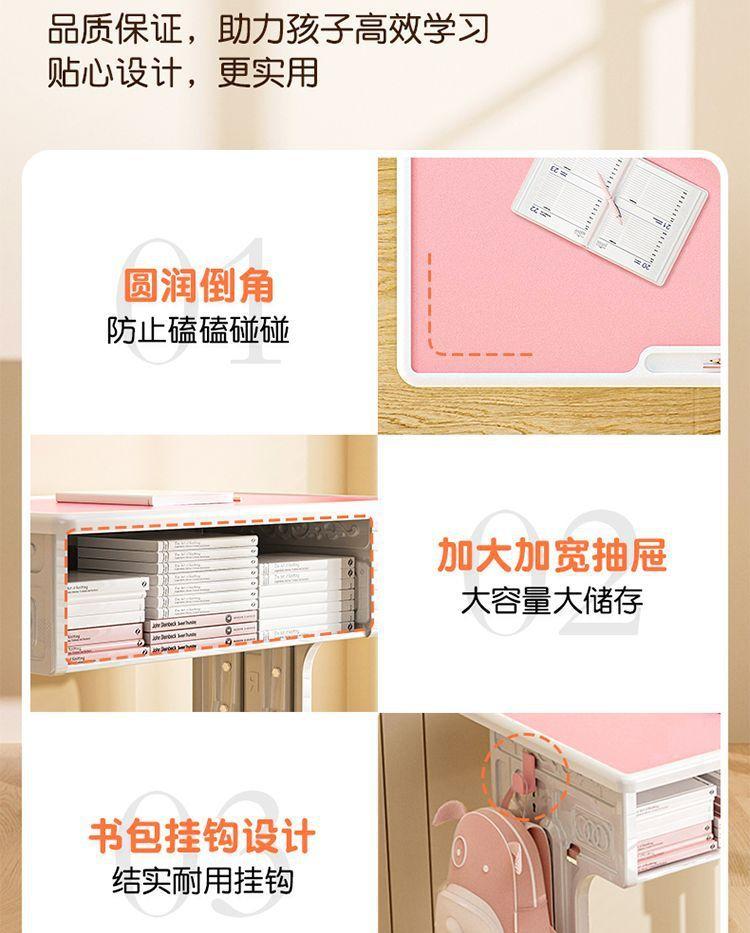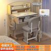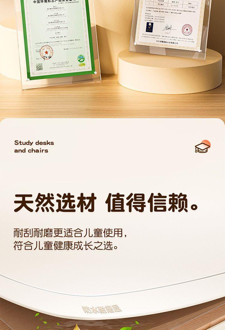 Height-Adjustable Desk and Chair Stool - Free Hook【A60 Set】Natural Wood, School style height-adjustable desk a...