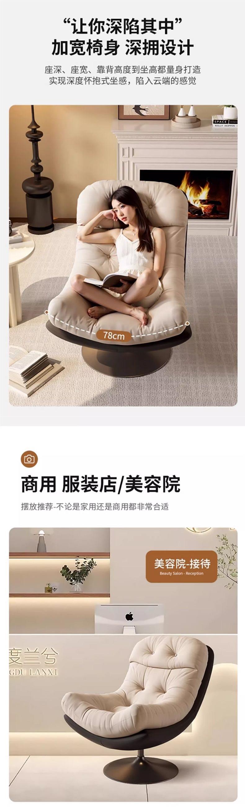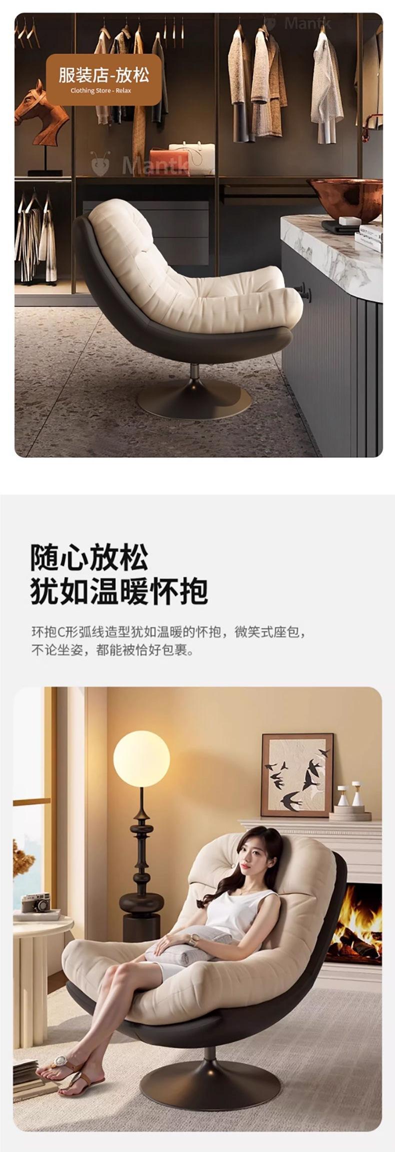 Sillón Individual Nuevo de Diseño para Ocio Reclinable y para Sentarse, Sillón Sofá Giratorio, Lujo Ligero para Sala de Estar, Balcón, Silla Perezosa Net Red