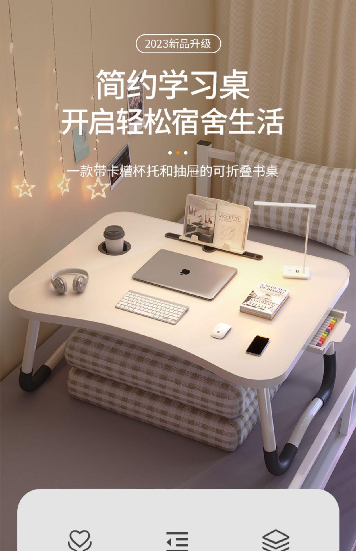 Mesa plegable para cama, mesa para portátil, mesa pequeña y cómoda para sentarse en el dormitorio de estudiantes, escritorio de estudio en casa