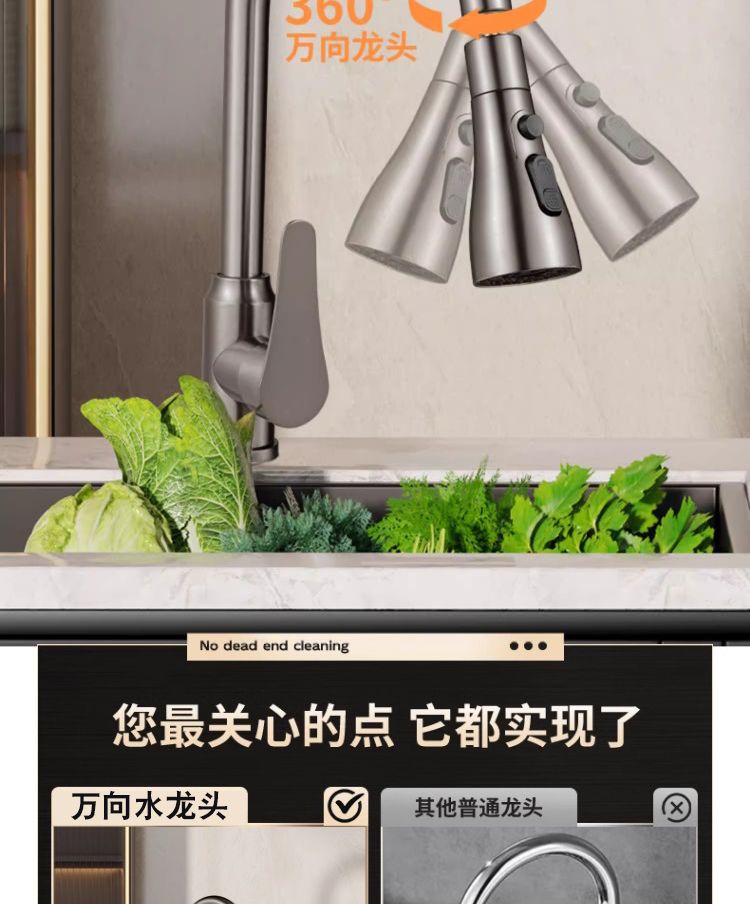 Water-coated, one hot and cold, one pull-out, three-function water jet, extra thick model, one without tube