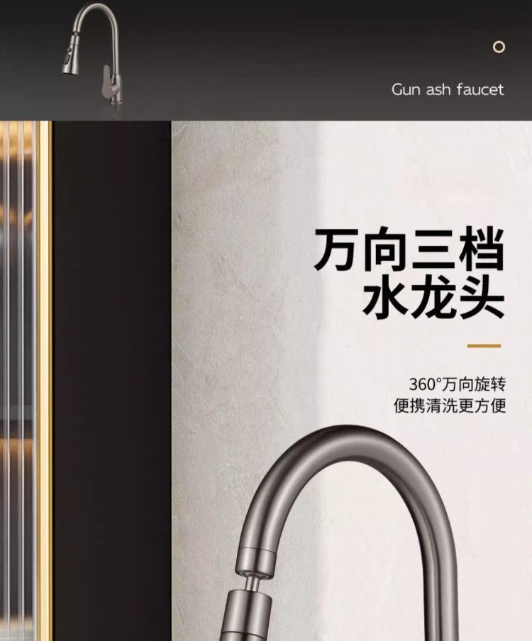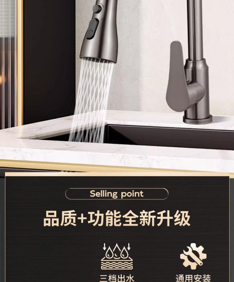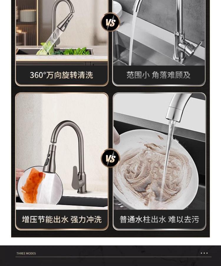 Water-coated, one hot and cold, one pull-out, three-function water jet, extra thick model, comes with 60 tubes