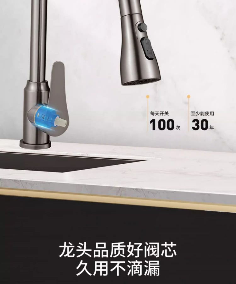 Water-coated, one hot and cold, one pull-out, three-function water jet, extra thick model, comes with 80 tubes