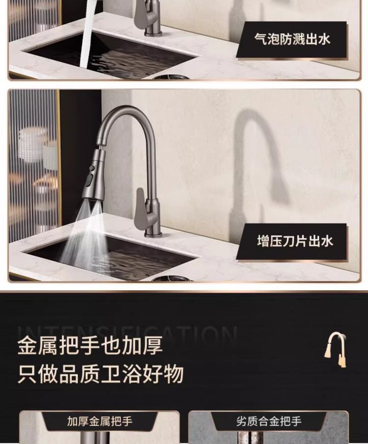 Brushed, one hot and cold, one pull-out dual-function thickened model, one with 80cm tube