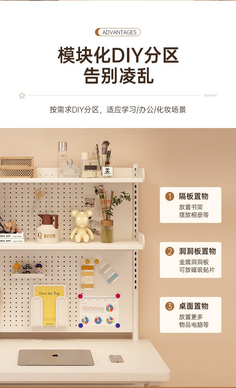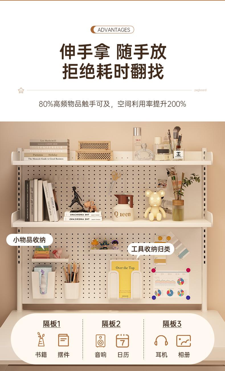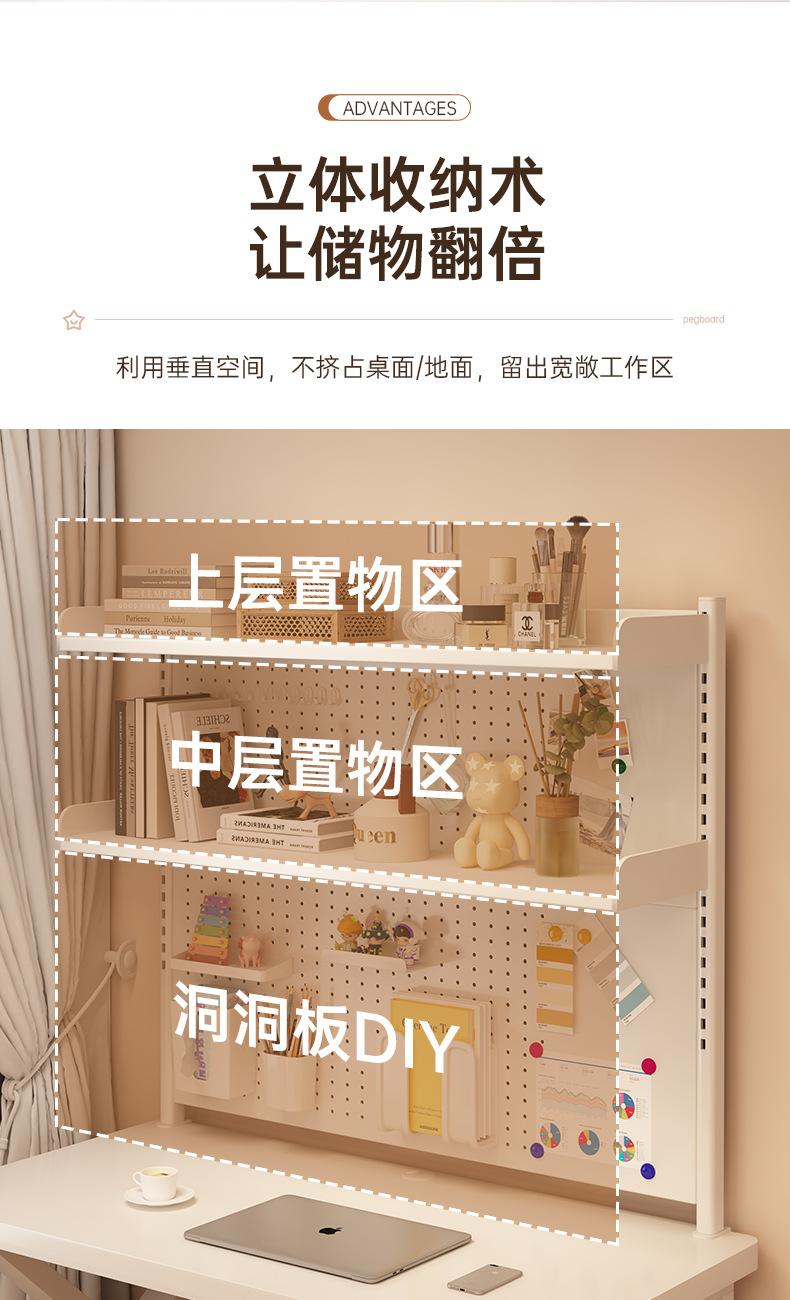Estante de Almacenamiento de Tablero Perforado de Escritorio Mesa de Estudio para Estudiantes Mesa para Computadora Organizador de Almacenamiento de Libros de Múltiples Capas Estante de Exhibición con Clip