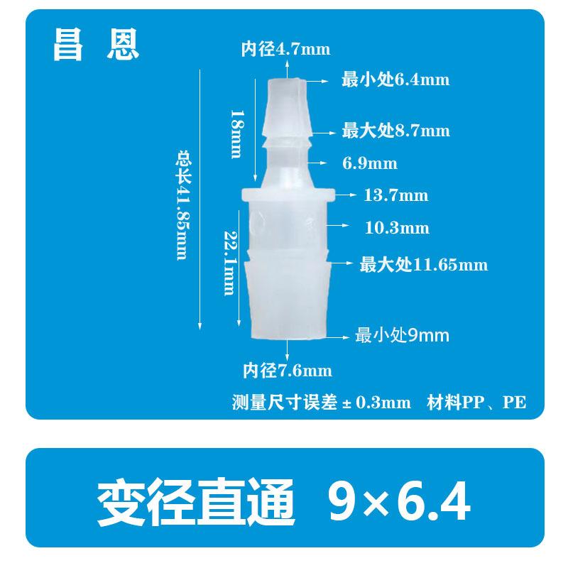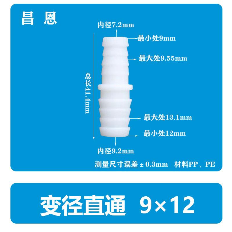 9*6.8mm Manguera Plástico Diámetro Variable Recto a través Tubería de Agua Junta Pagoda Grifo Pp Conector Rápido