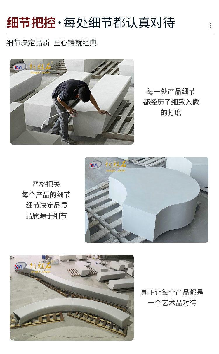 4. Proceso:Los procedimientos de control de calidad del sistema profesional permiten que nuestros productos terminados de GFRC alcancen el nivel, y pueden controlar estrictamente la calidad de las bancas de cemento GRC para exteriores.