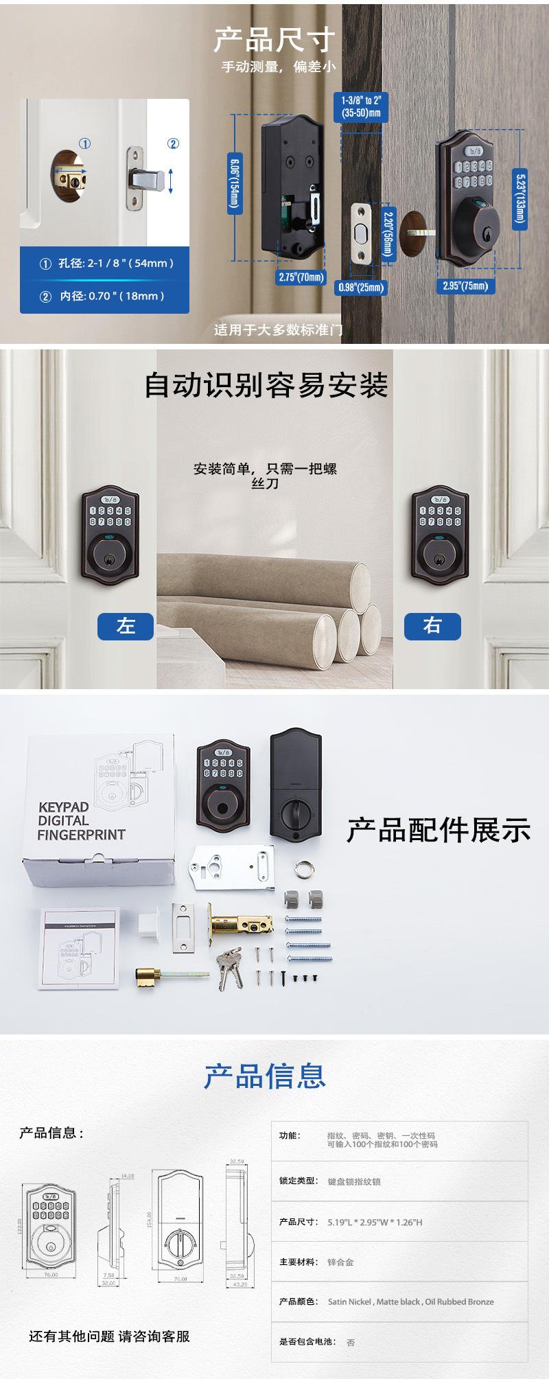 Fábrica de Origen Cerradura Silenciosa con Contraseña Múltiples Métodos de Desbloqueo Bloqueo Automático Cerradura Inteligente Americana