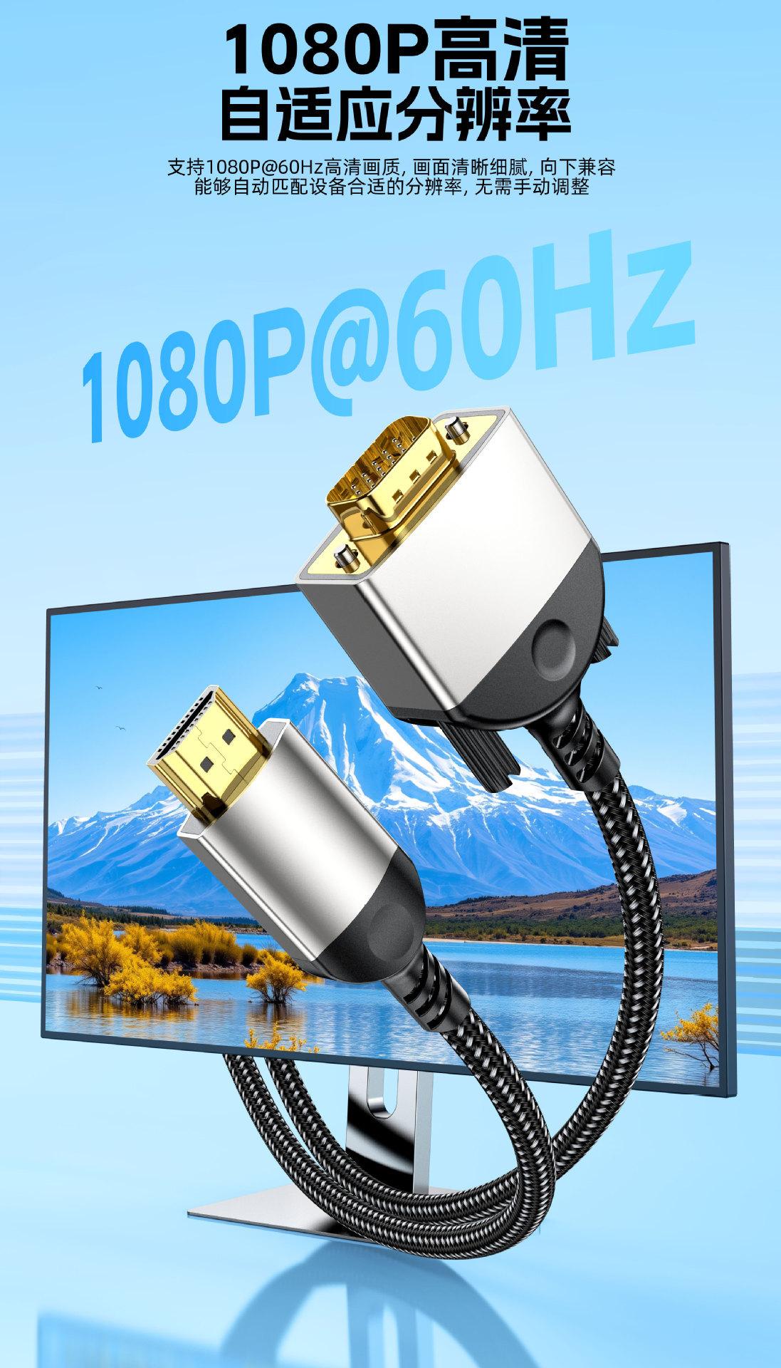 Cable de conversión HDMI a VGA transfronterizo decodificador computadora se conecta a monitor proyector modelo de aleación de aluminio 1080P