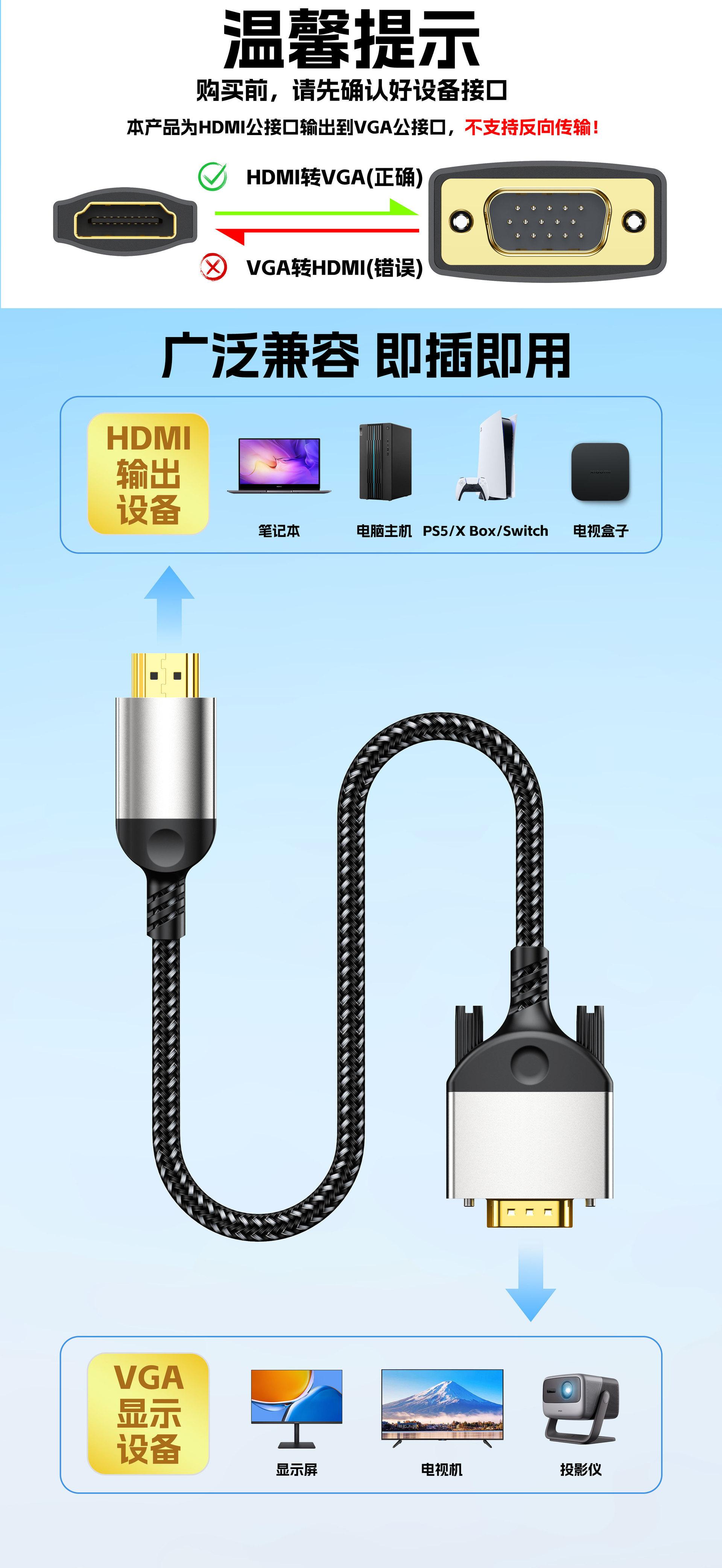 Compra Cable de conversión HDMI a VGA transfronterizo decodificador computadora se conecta a monitor proyector modelo de aleación de aluminio 1080P al por mayor en Joom.pro