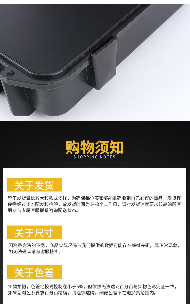 "outer size: 335*275*100mm inner size: 315*235*90mm inner depth of upper and lower covers: 25+65mm, "outer siz...