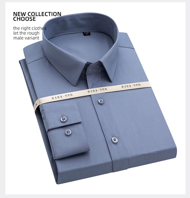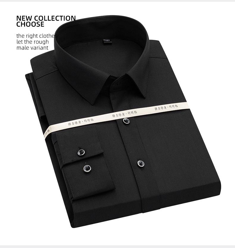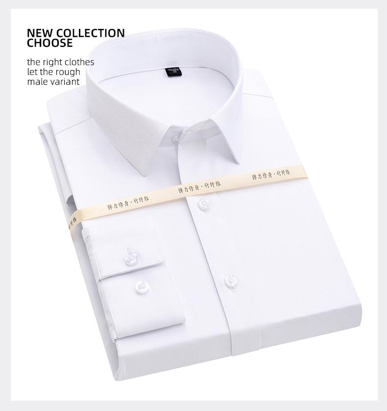Talla 38-50 XS-8XL camisa de trabajo para hombre de fibra de bambú elástica que no necesita planchado, camisa blanca de manga larga con talla grande