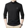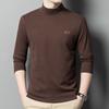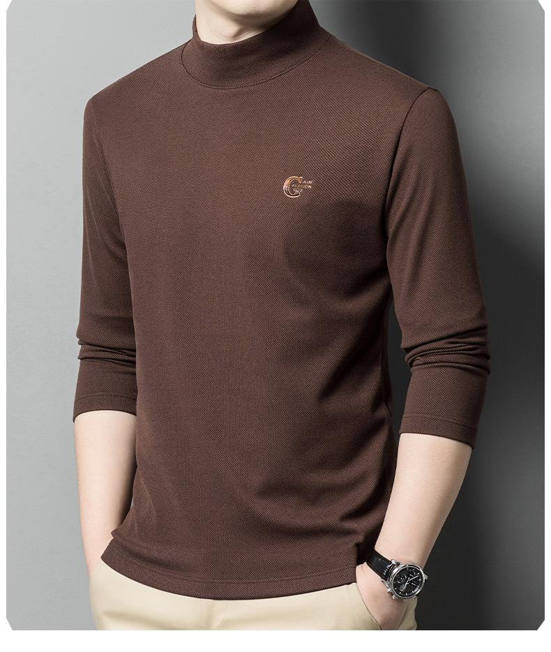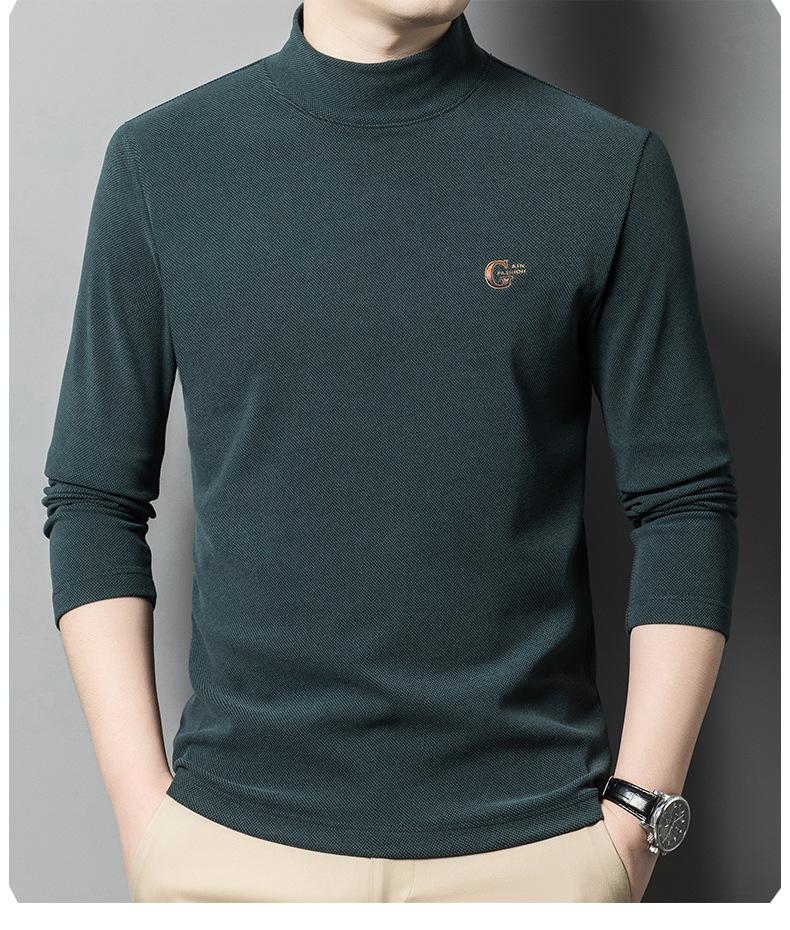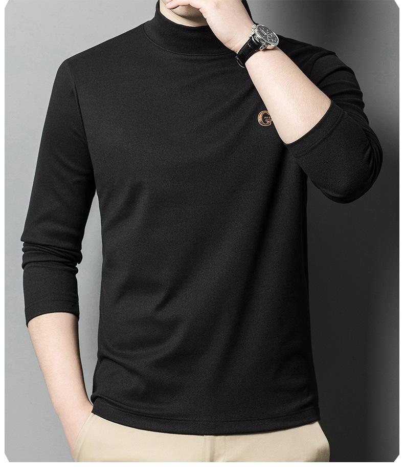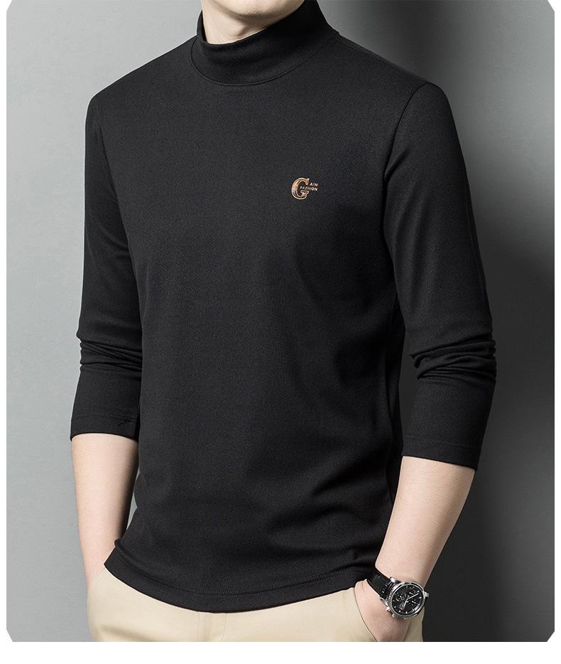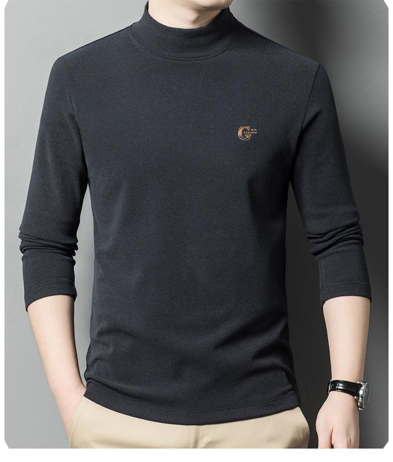 Camiseta de terciopelo de doble cara de manga larga para hombre, camiseta básica de cuello alto medio para hombre de mediana edad, casual, versátil, bordada, cálida, ropa para hombre